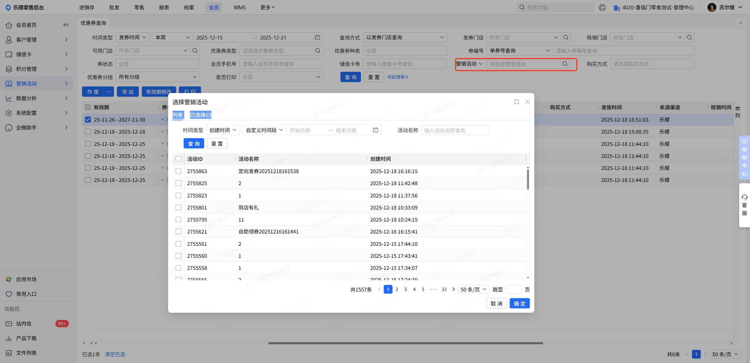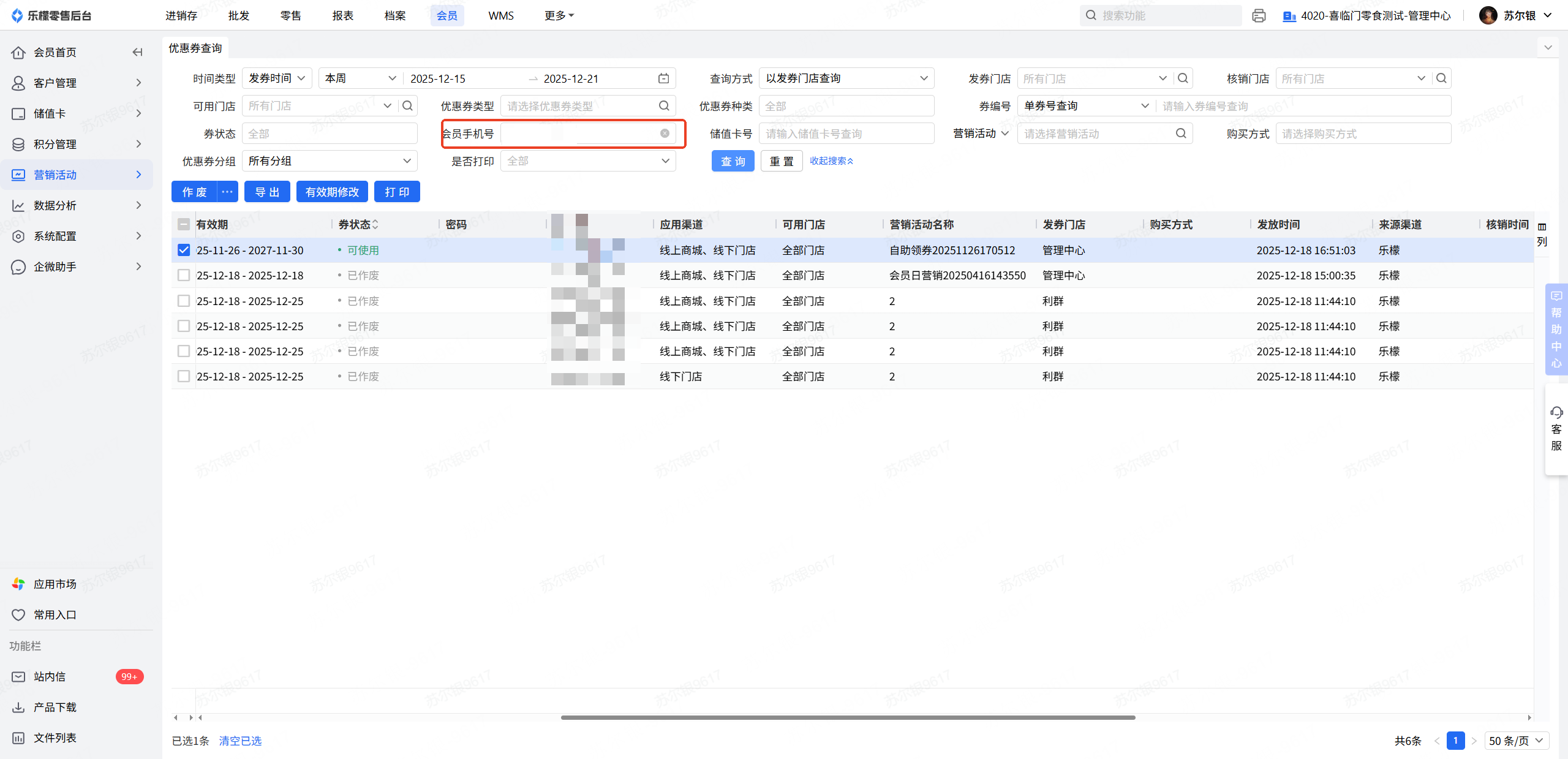👉【操作路径】:·会员-营销活动-优惠券查询