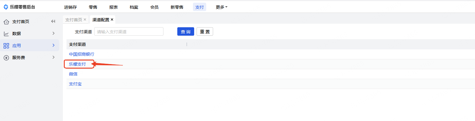 👉【操作路径】:·支付-应用-渠道配置