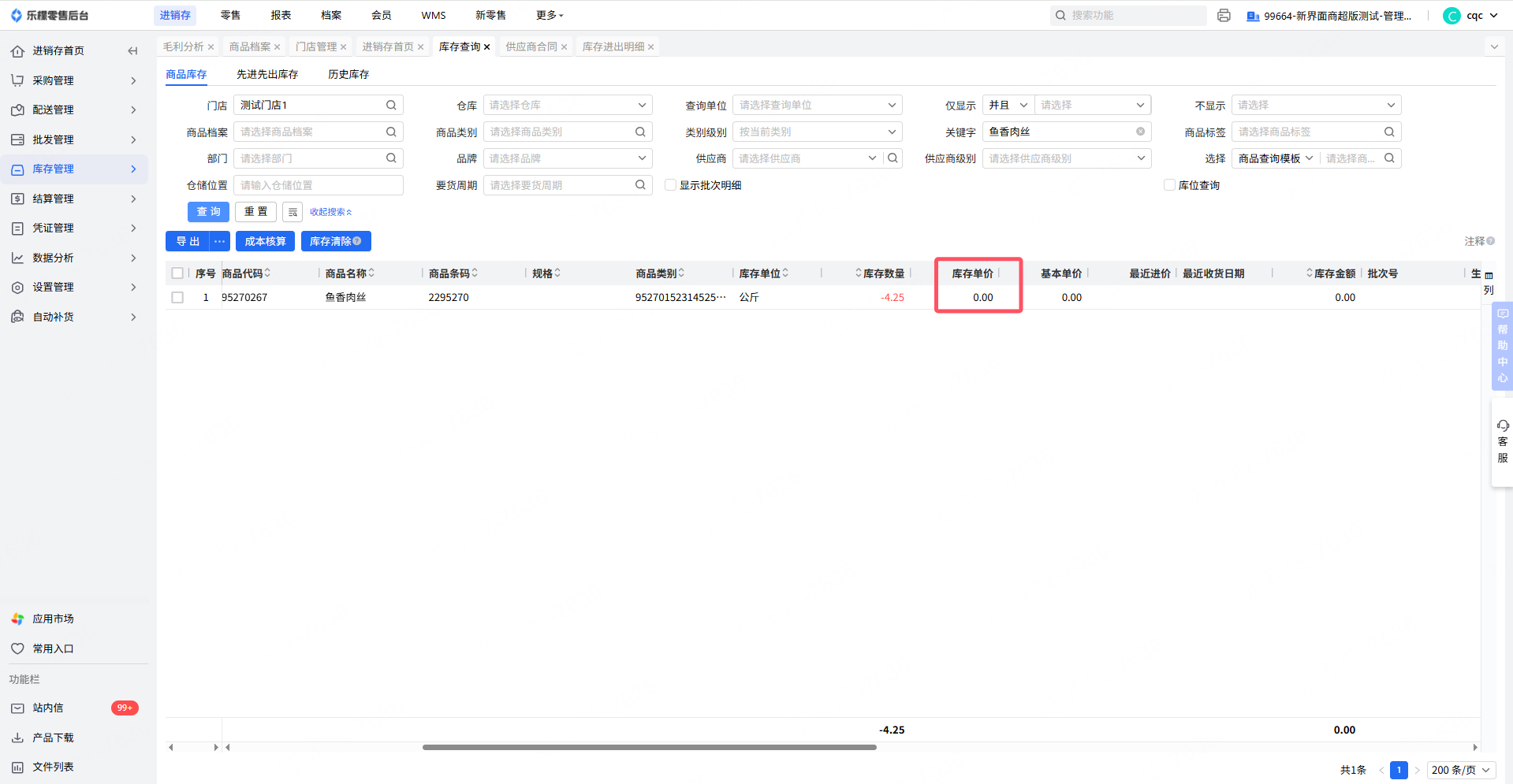 例如:商品档案中有进货价,库存查询中基本单价是0 ,销售毛利也是百分百