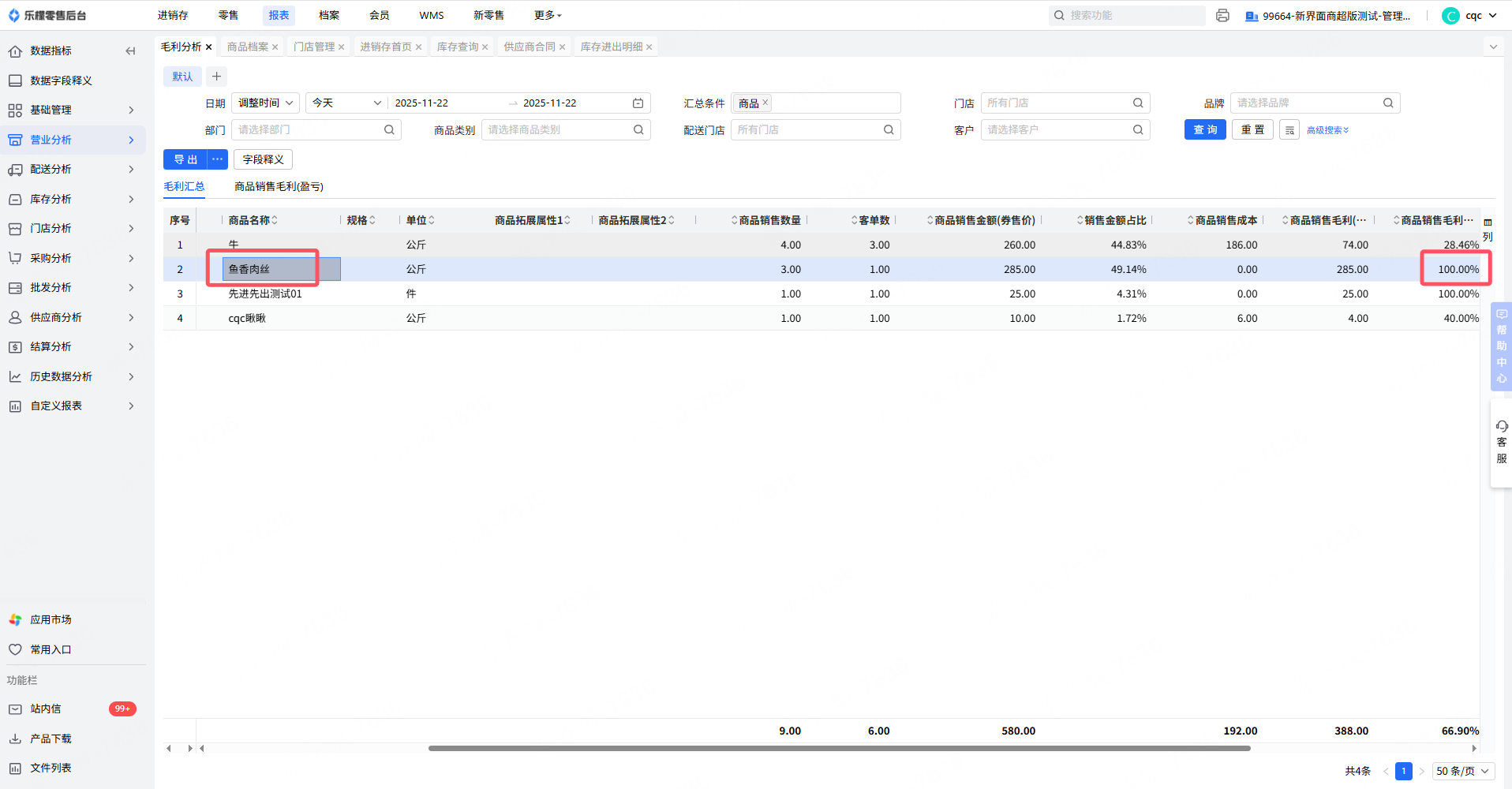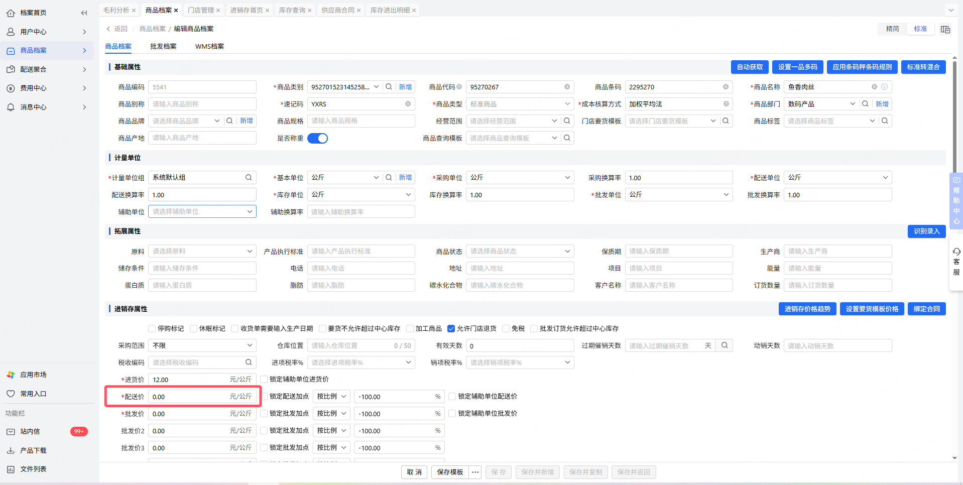 原因是这家门店类型是加盟店,从未入库的情况下取值档案配送价,档案配送价设置的是0,所以毛利100%