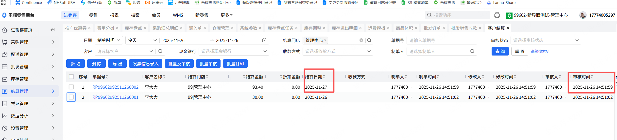 批发销售收款是按客户结算的结算日期查询的,而非制单/审核时间