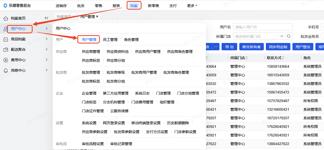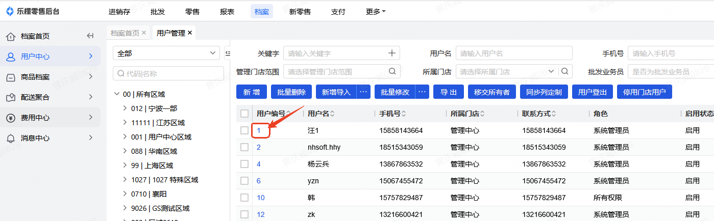 👉【操作路径】:·档案-用户中心-用户管理