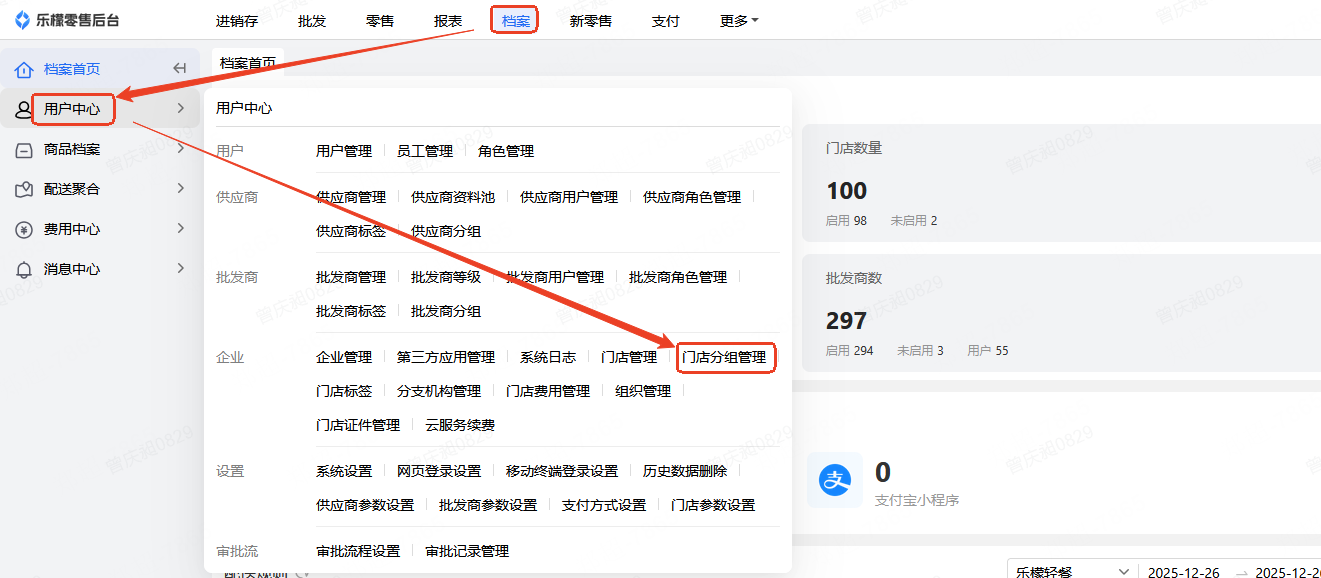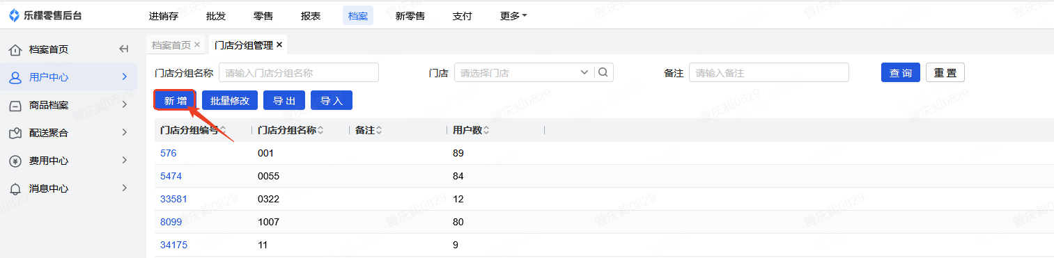 如想设置账号只能看到部分门店,需要先到档案-用户中心-门店分组管理