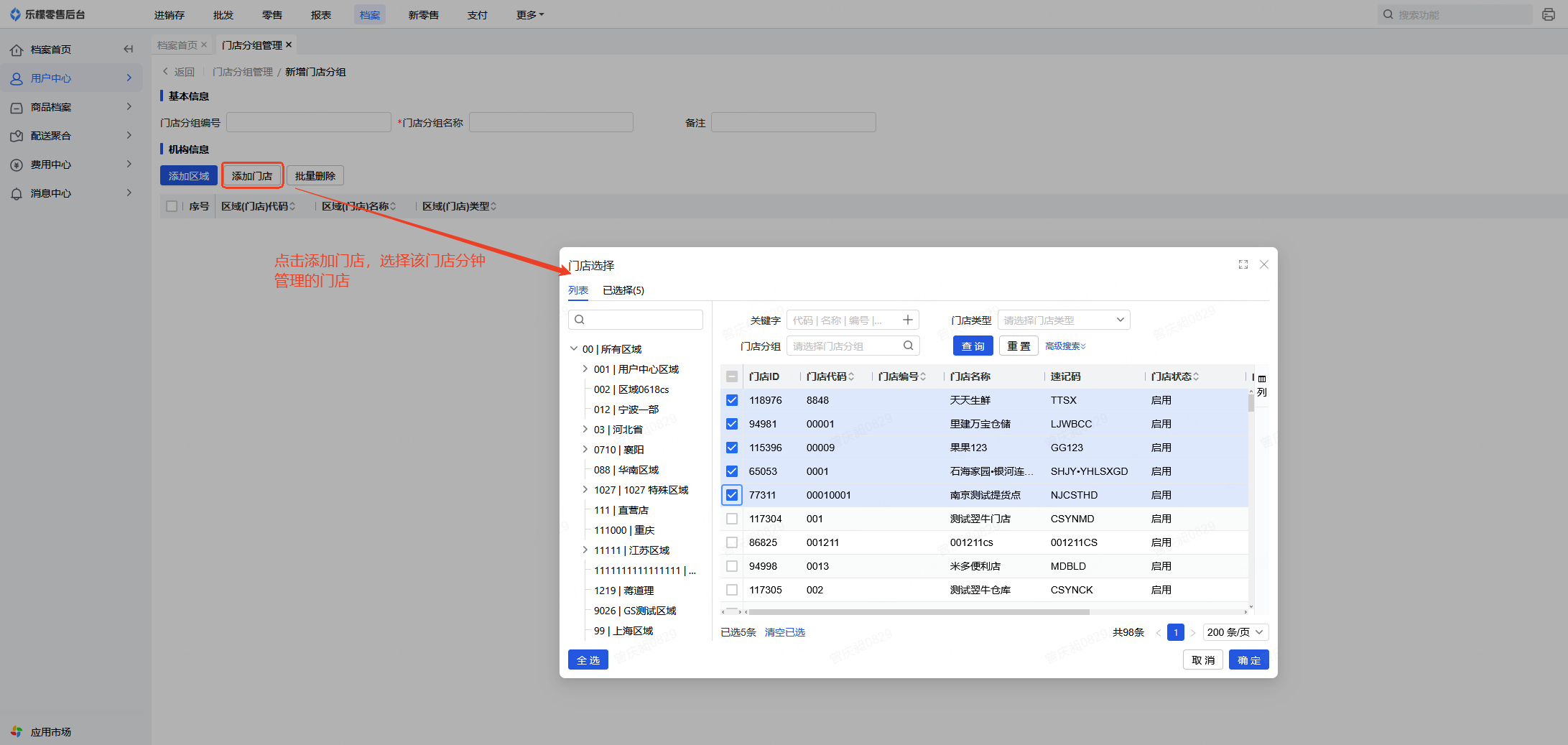 创建一个门店分组,添加对应门店后保存