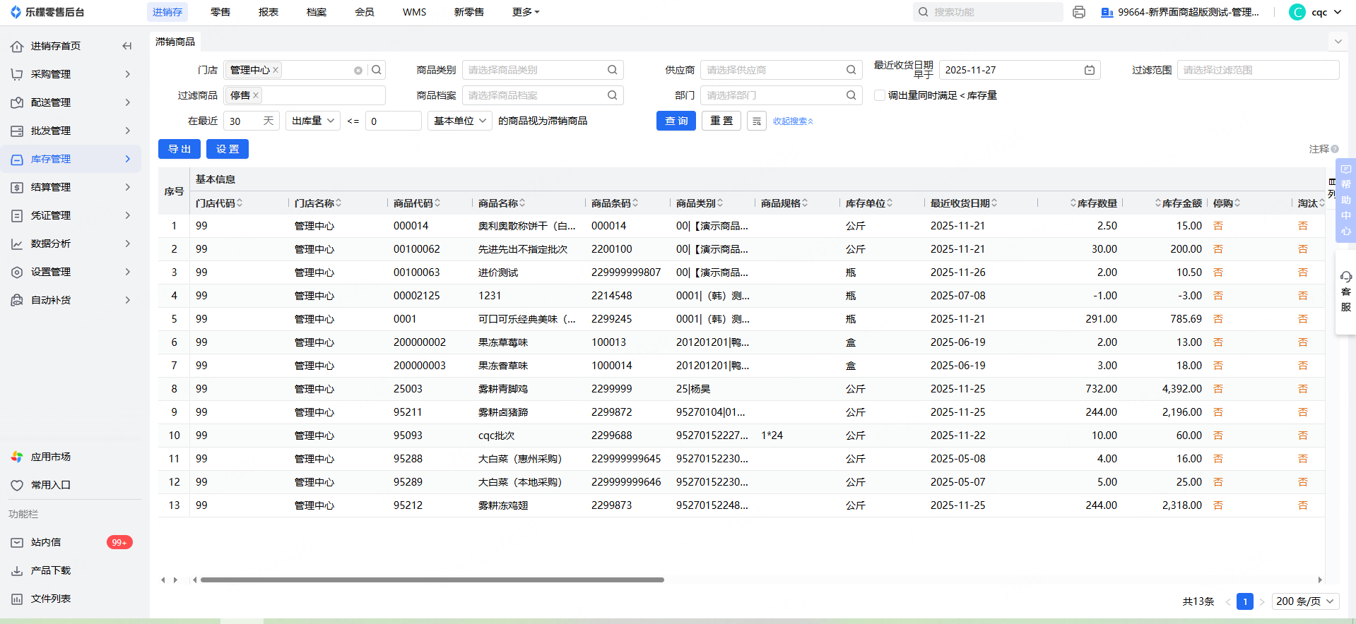 👉【操作路径】:进销存-库存管理-异常统计-滞销商品