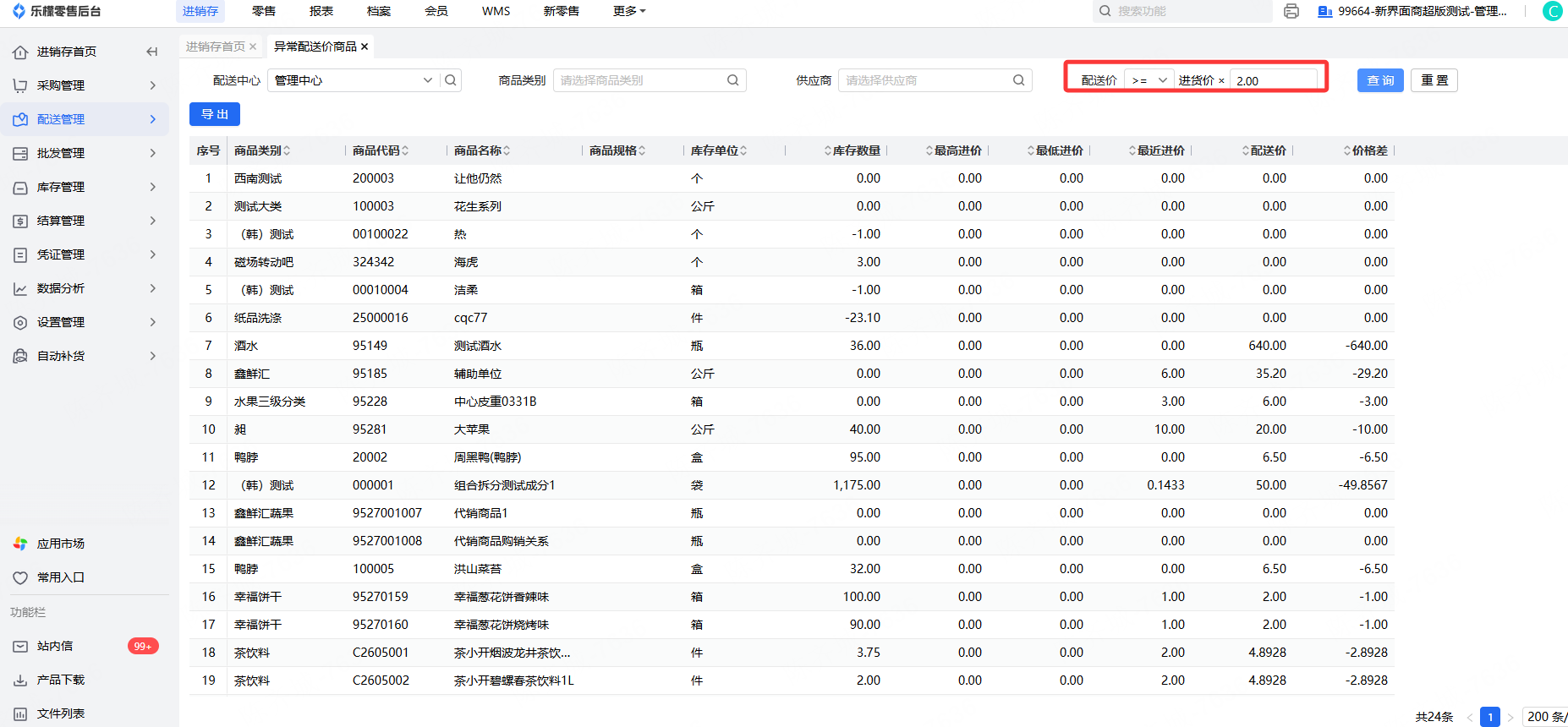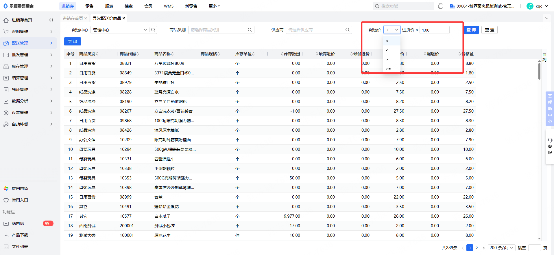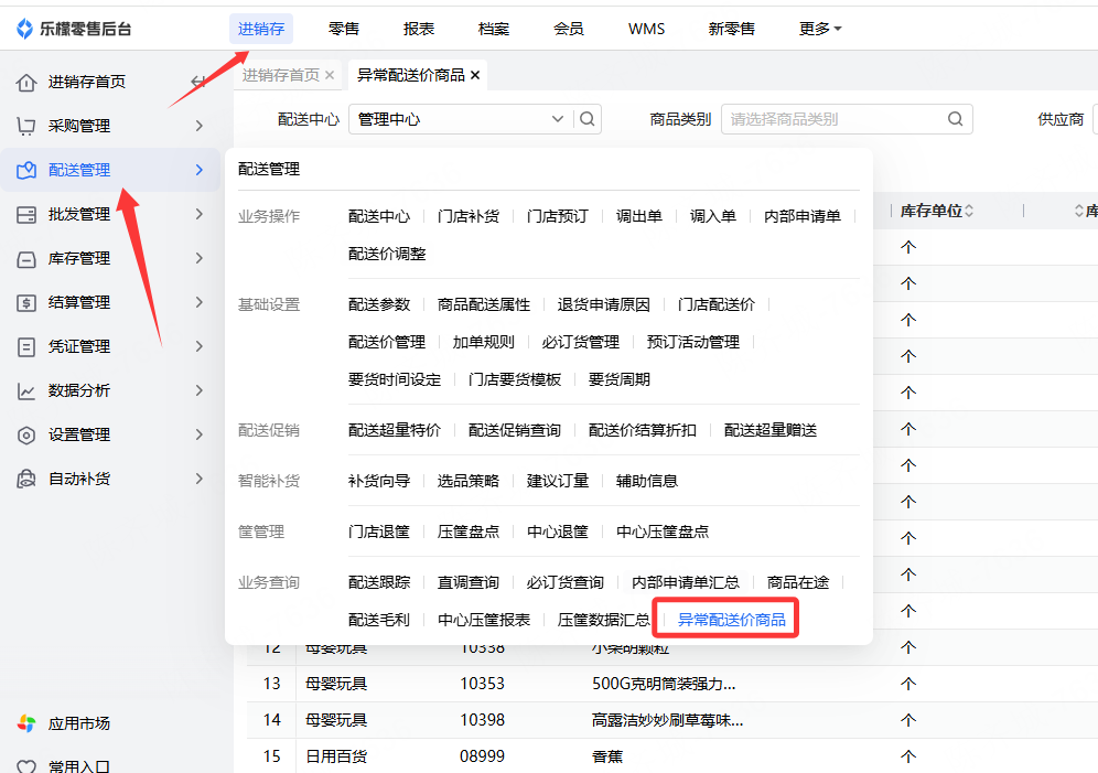 👉【操作路径】:·进销存-配送管理-业务查询-异常配送价商品