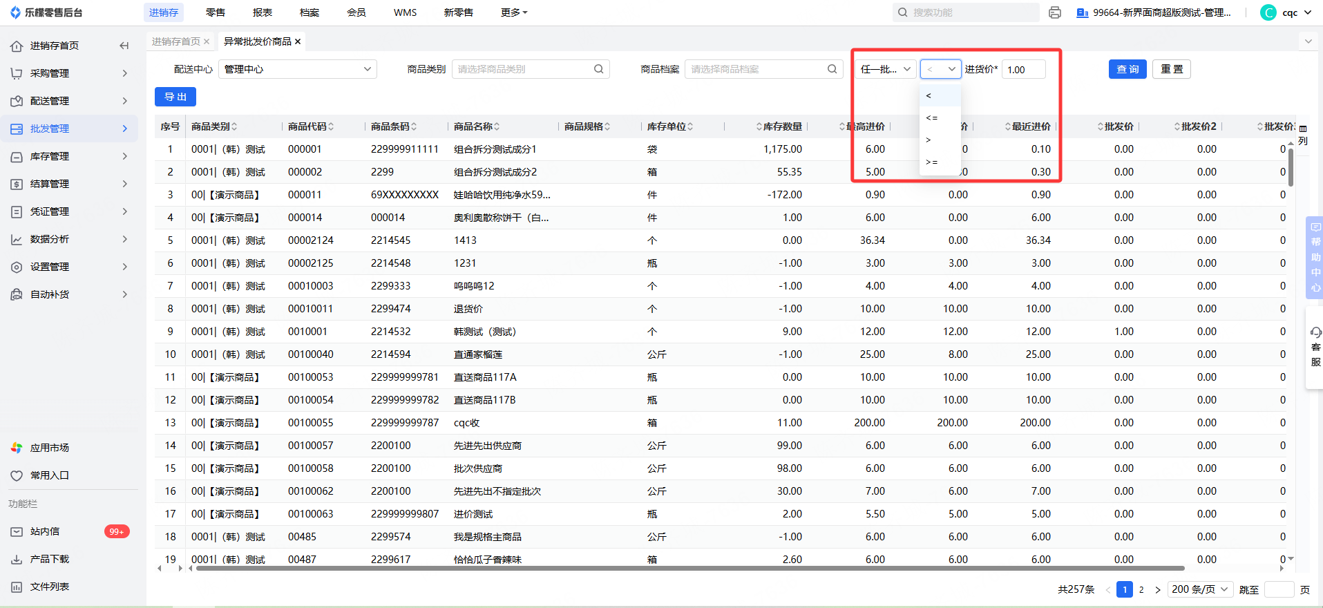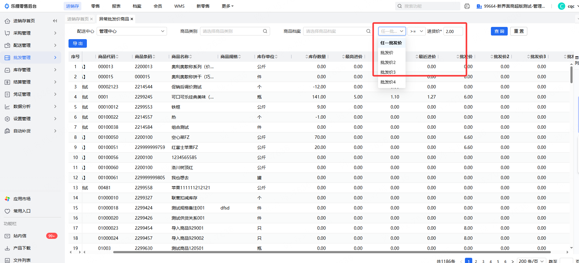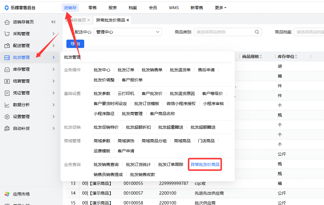 👉【操作路径】:·进销存-批发管理-业务查询-异常批发价商品