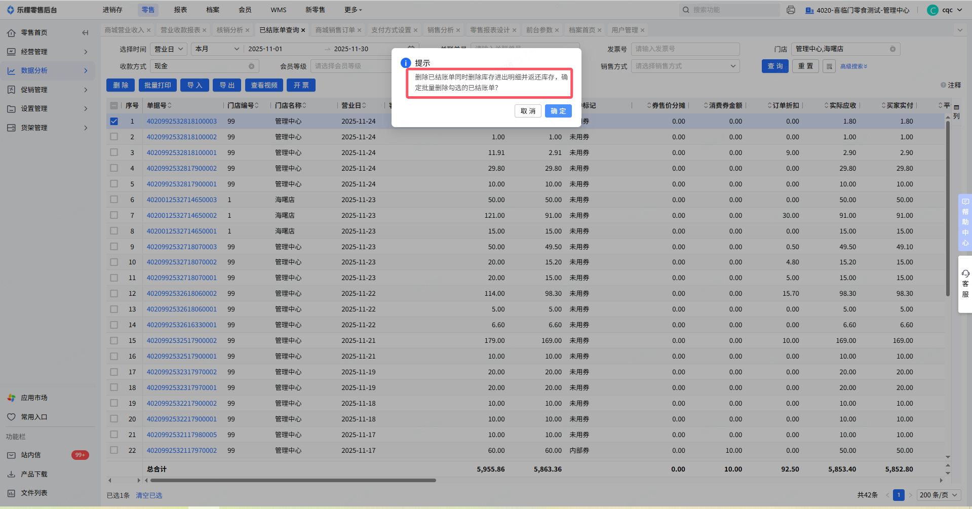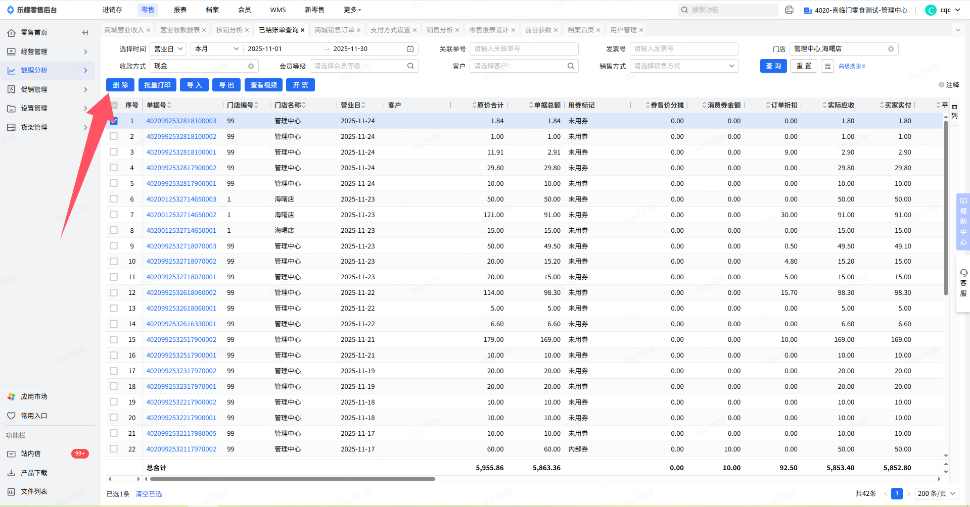 👉【操作路径】:·零售-数据查询-已结账单查询
