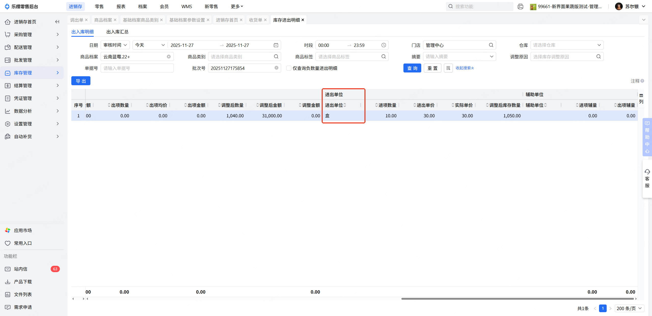 调整方法:库存盘点为0,重新入库(盘点单、库存调整、收货单等)单位选择配送单位,采用新的批次号入库。