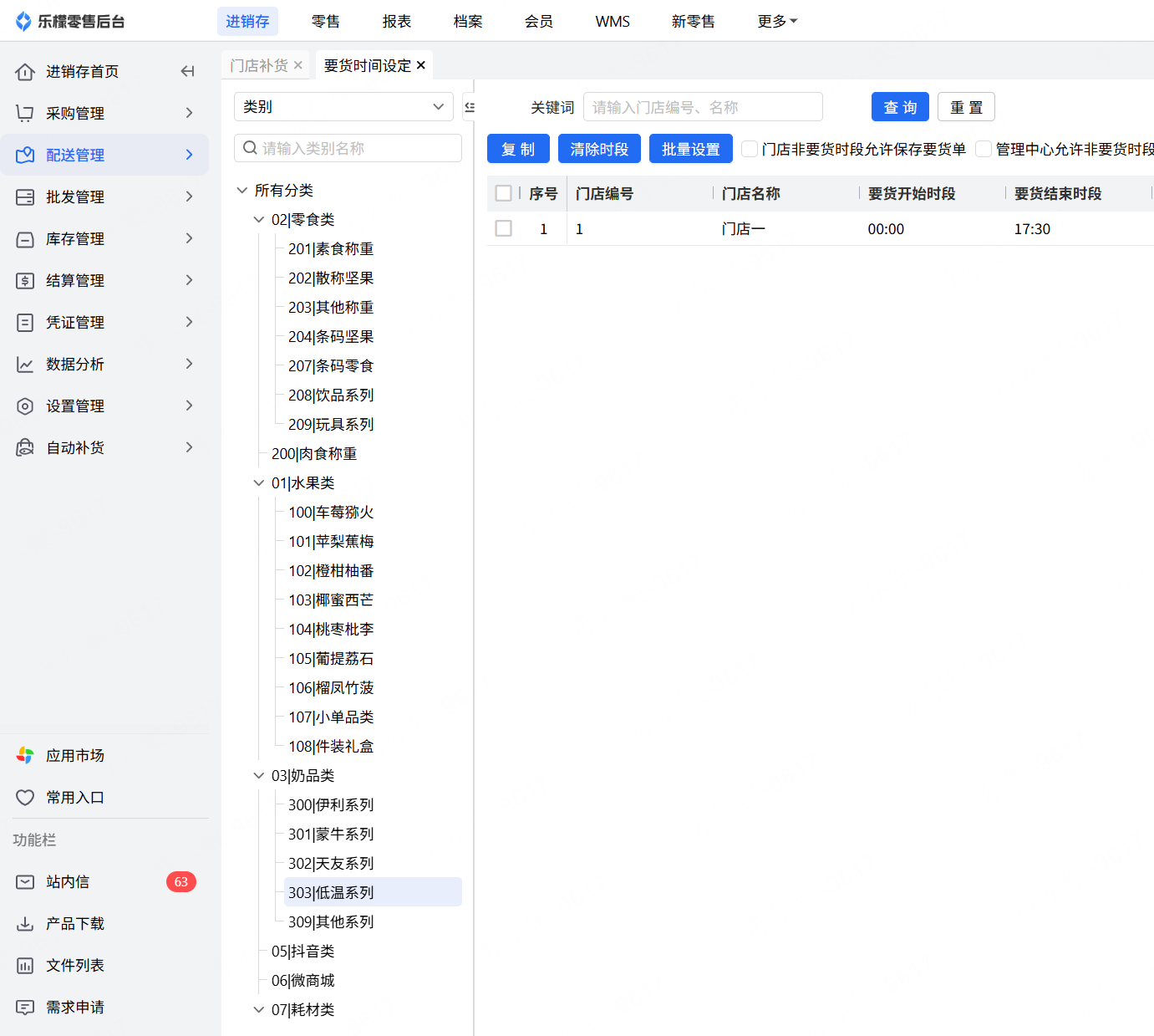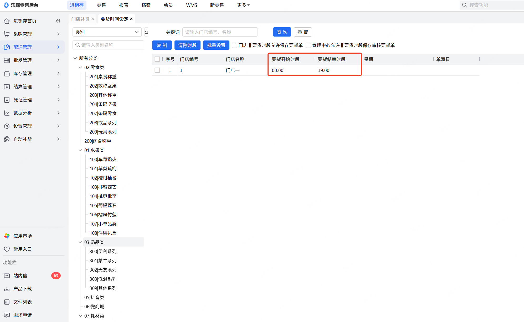 👉【操作路径】:·进销存-配送管理-要货时间设定