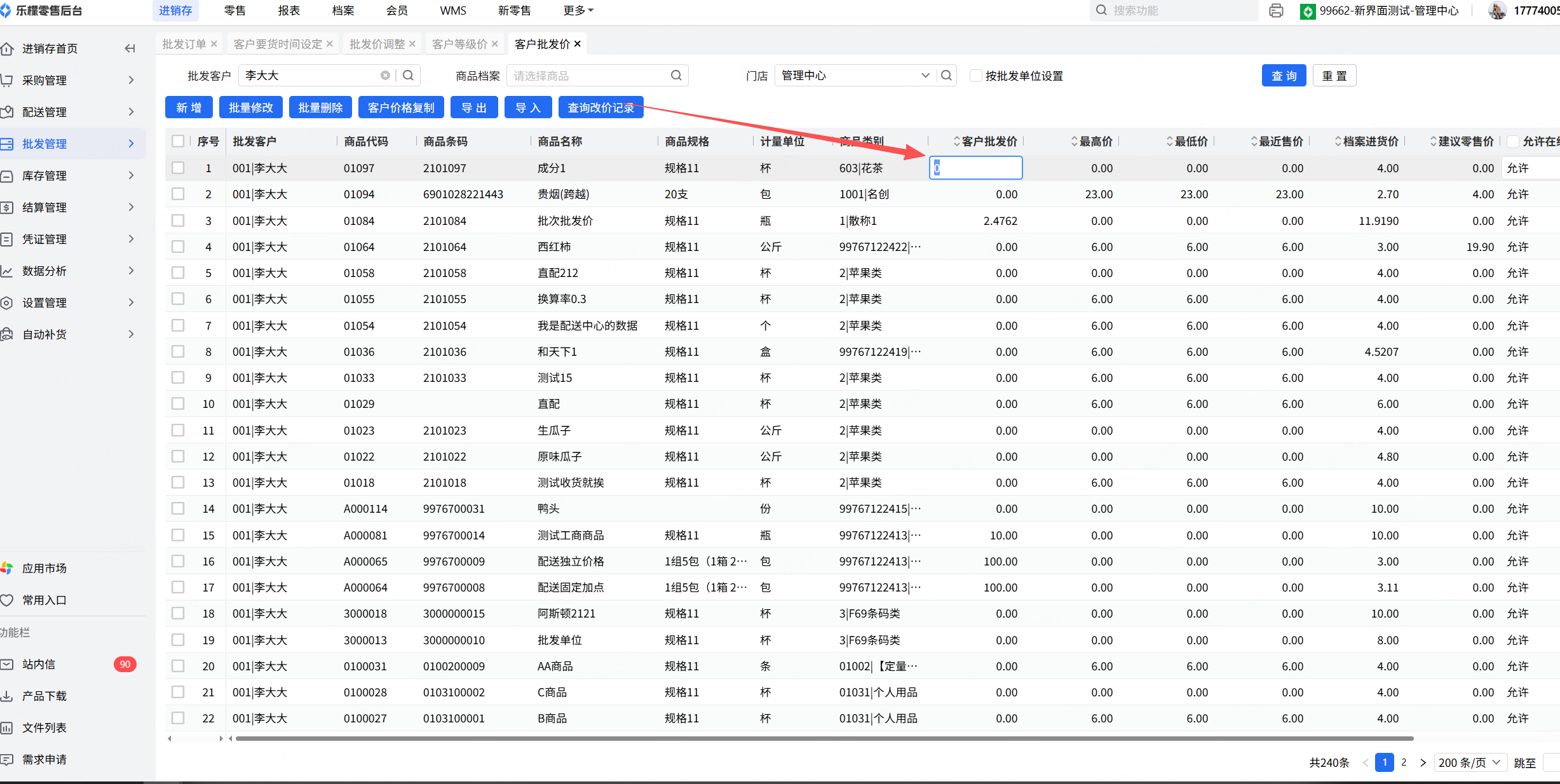 👉【操作路径】:·进销存-批发管理-客户批发价