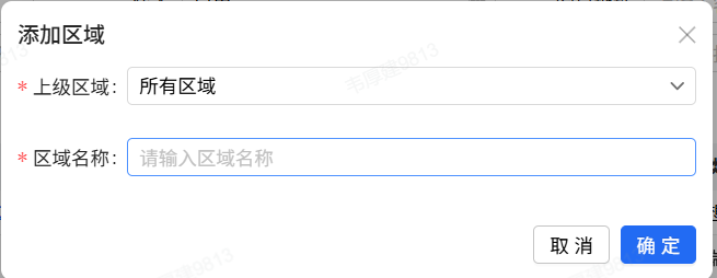 (2)点击新增,填写上级区域和区域名称