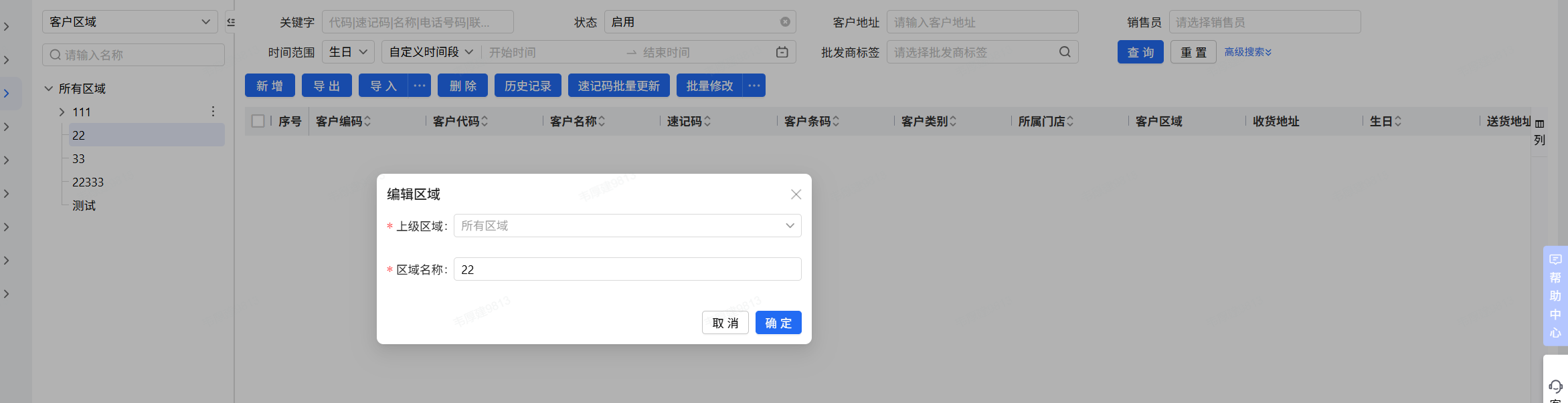 客户区域设置