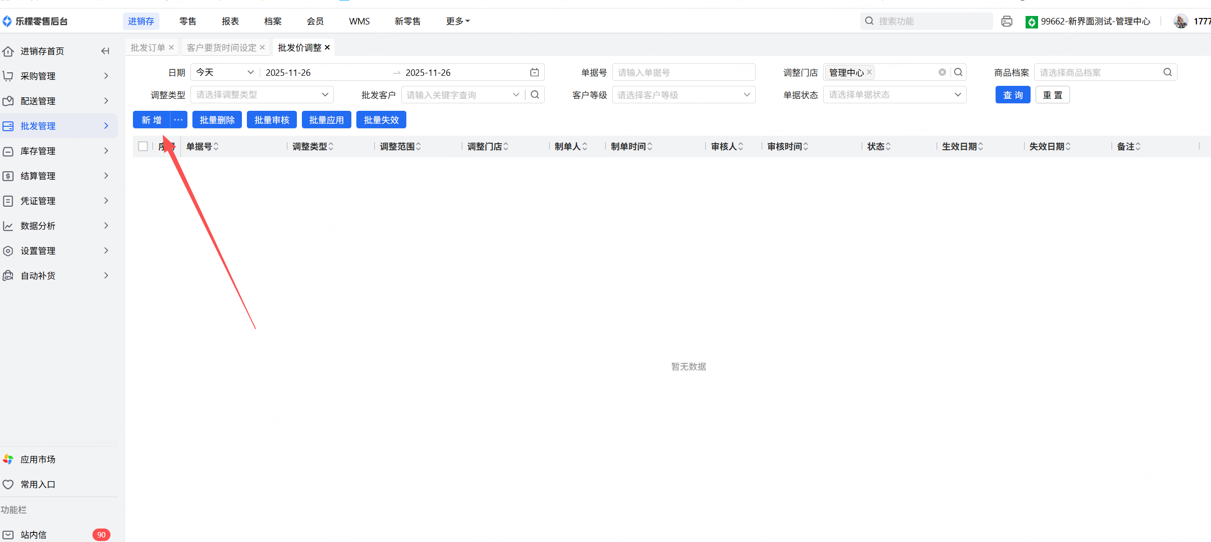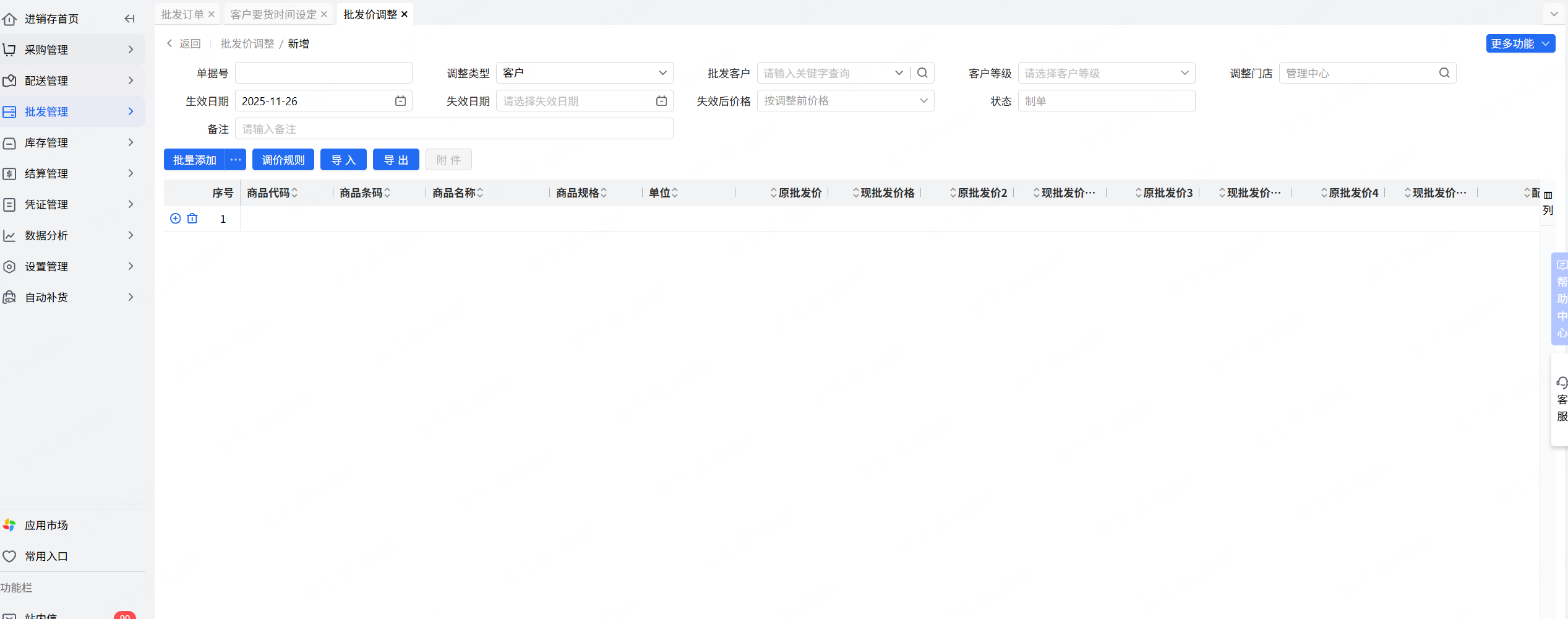 👉【操作路径】:·进销存-批发管理-批发价调整