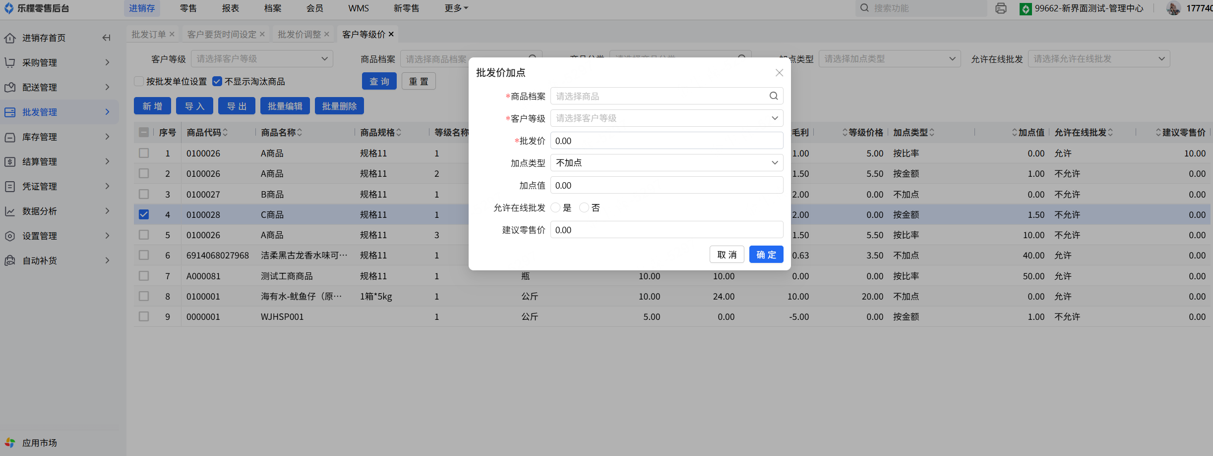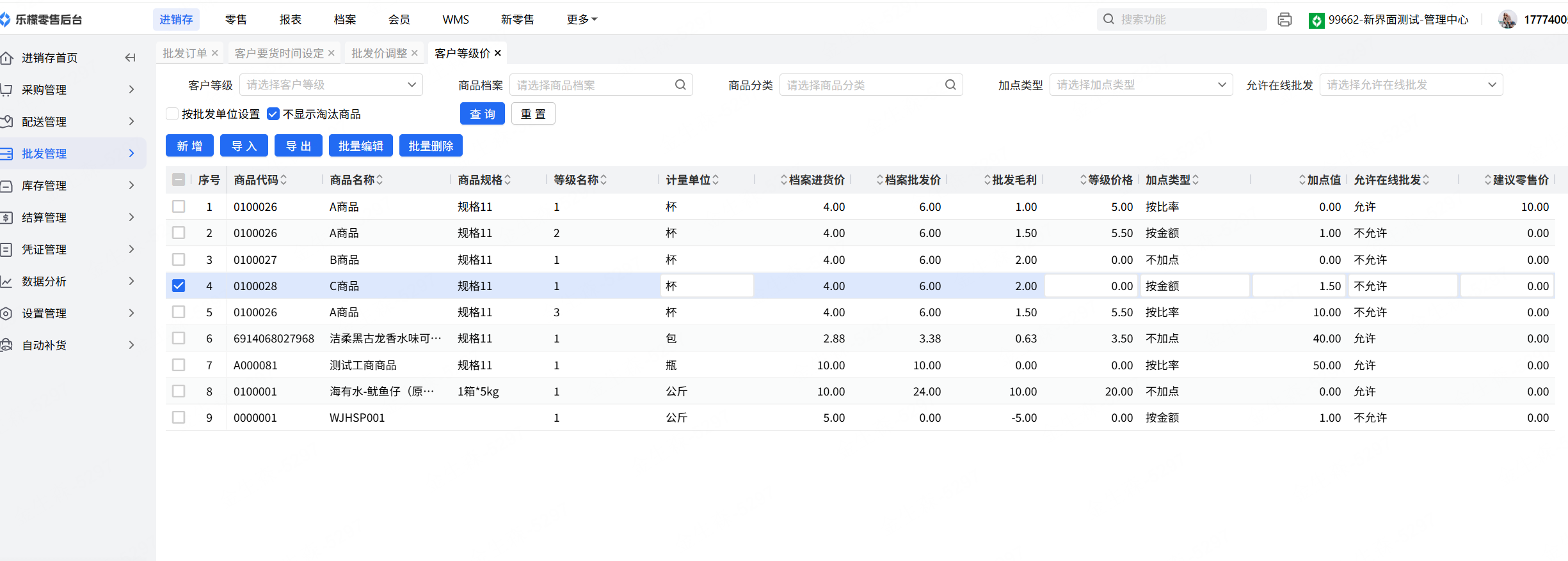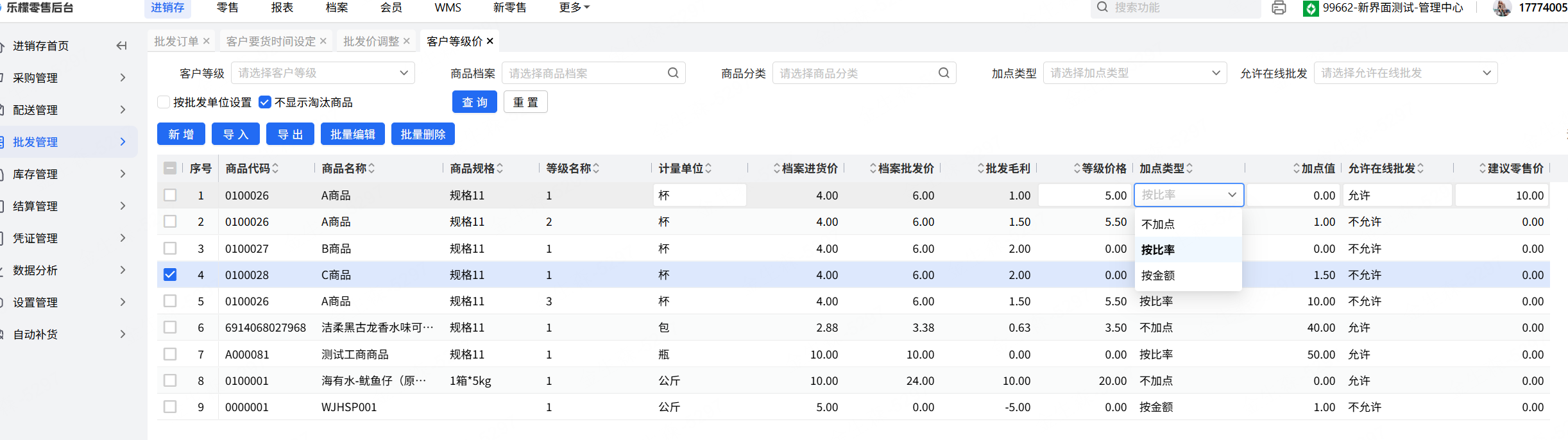 客户等级价格,可以设置客户的客户等级价格,也可以设置客户的批发价加点规则。