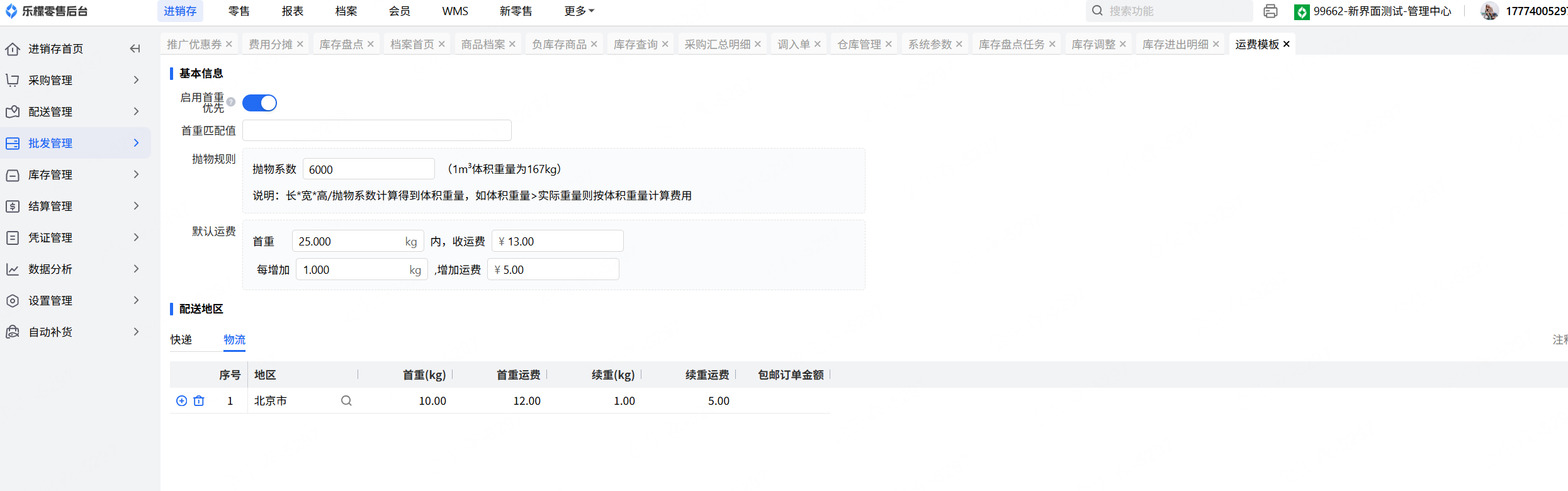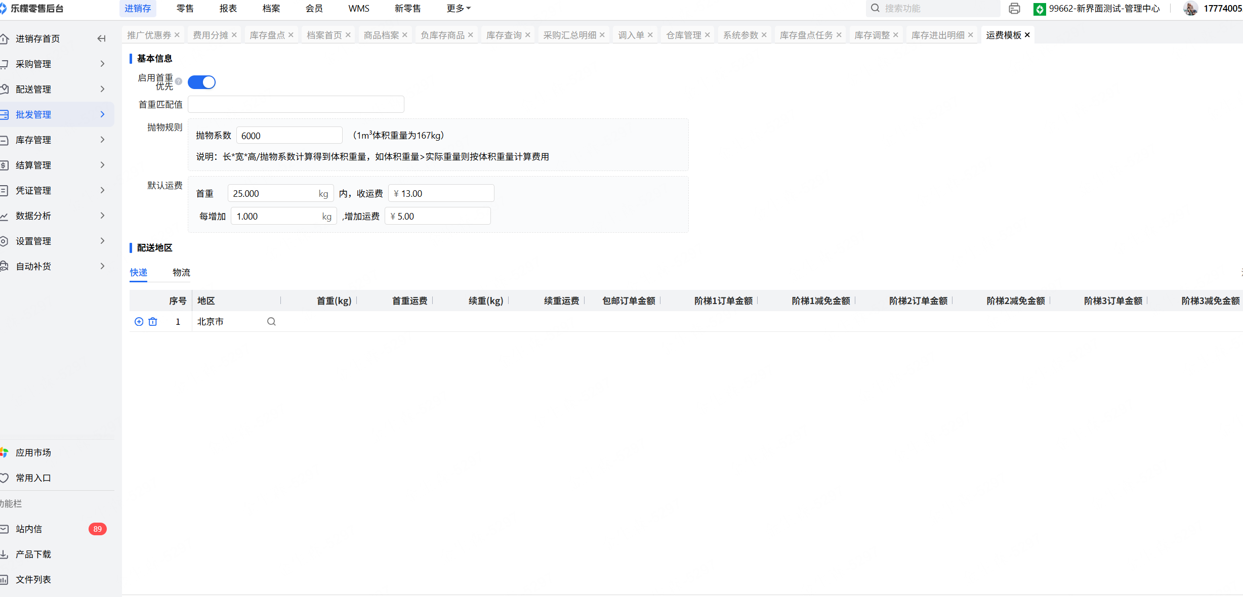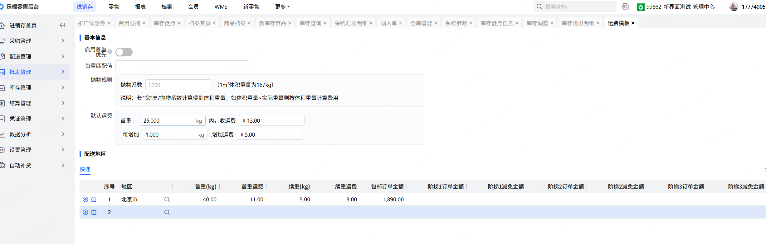 👉【操作路径】:·进销存 - 批发管理 - 运费模板