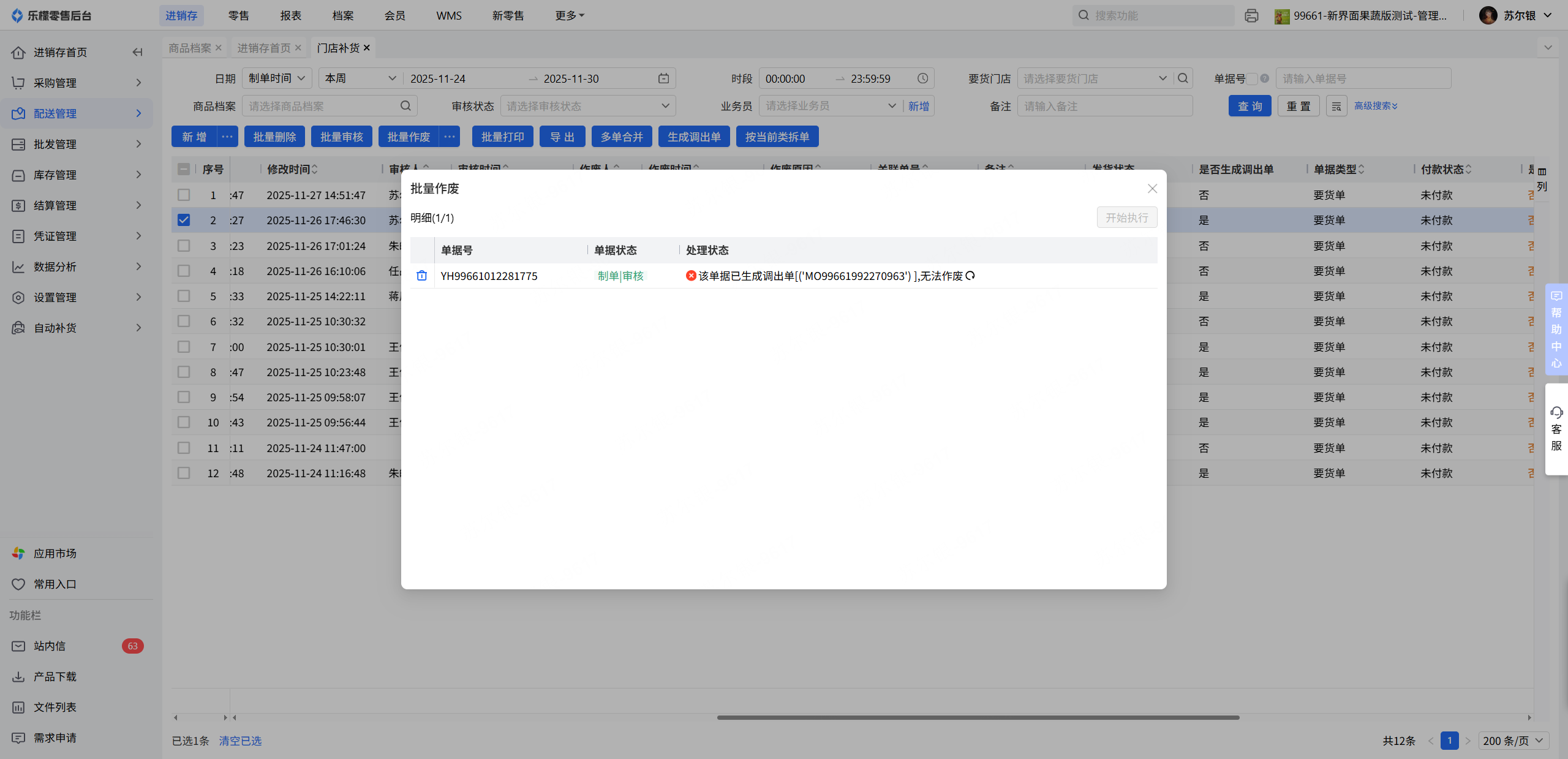 1.这个提示是已通过门店补货单已生成了调出单,原门店补货单就无法作废