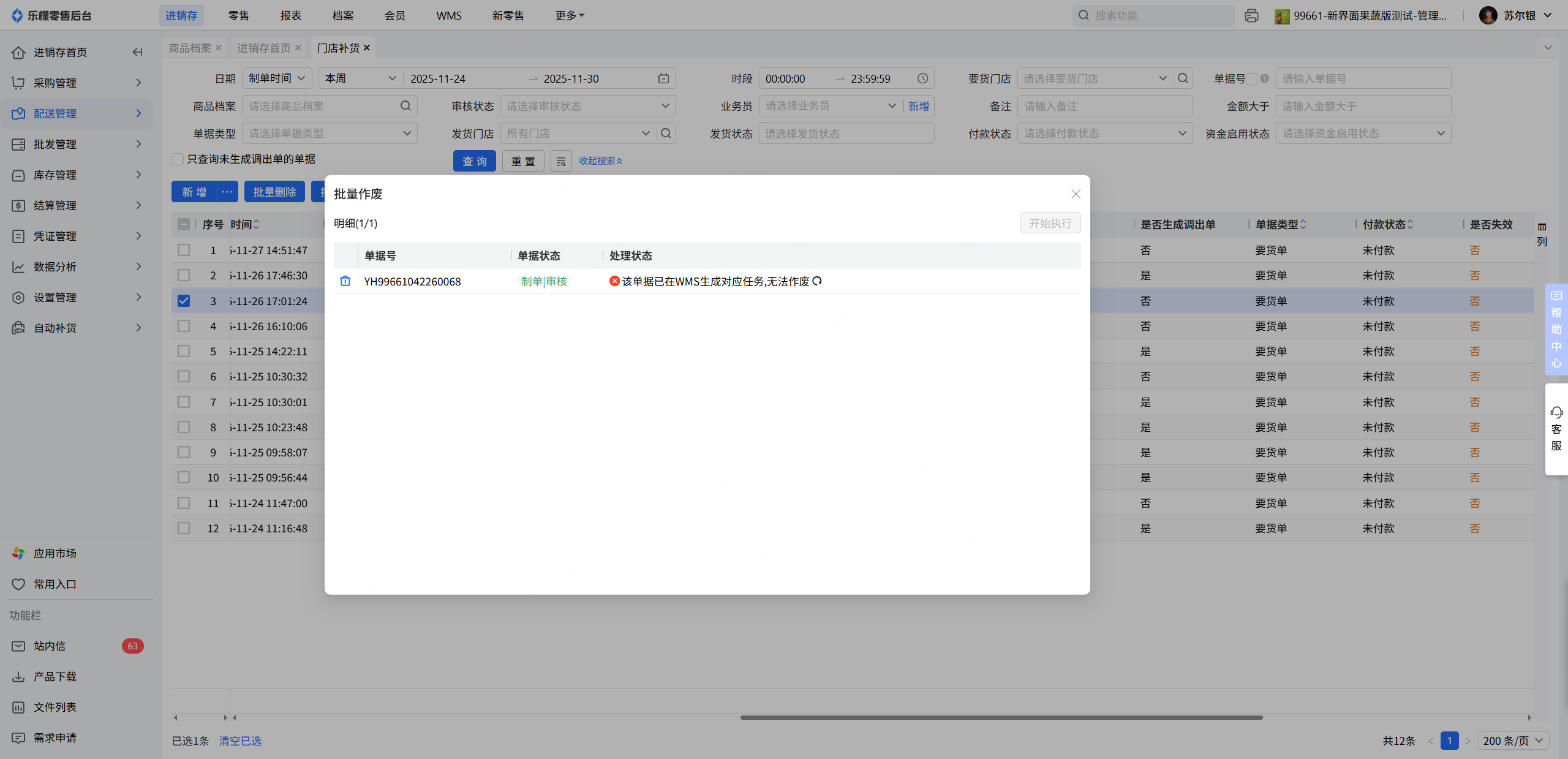 2.提示:该单据已在WMS生成对应任务,无法作废