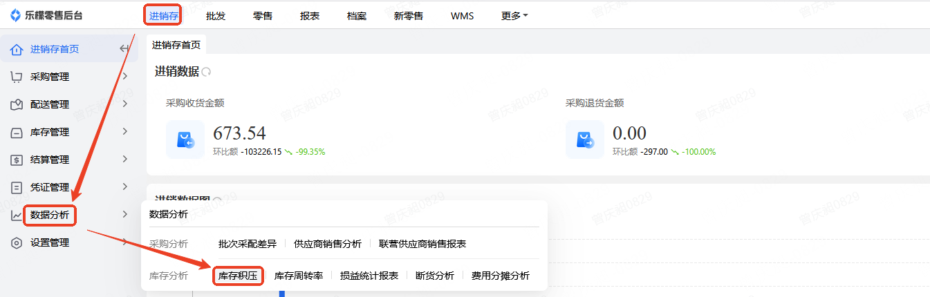 👉【操作路径】:进销存 - 数据分析 - 库存积压