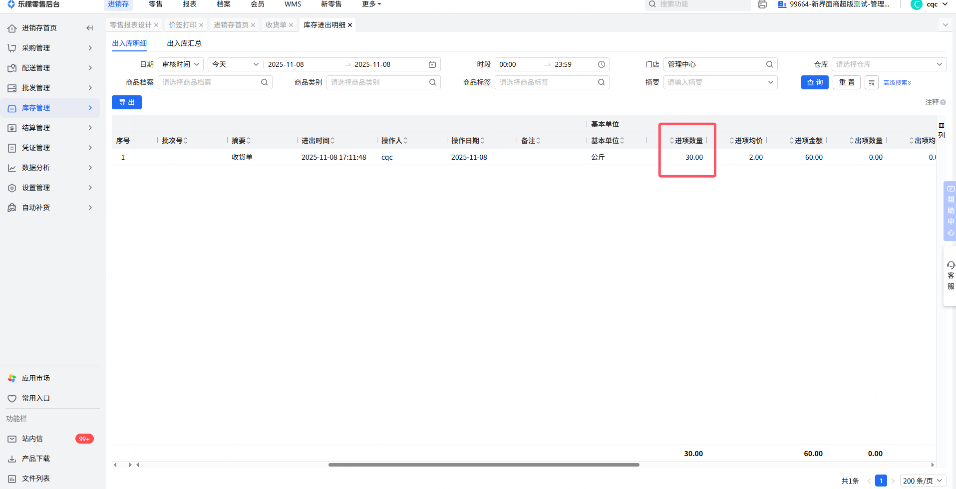 👉【操作路径】:进销存-库存管理-业务查询-库存进出明细