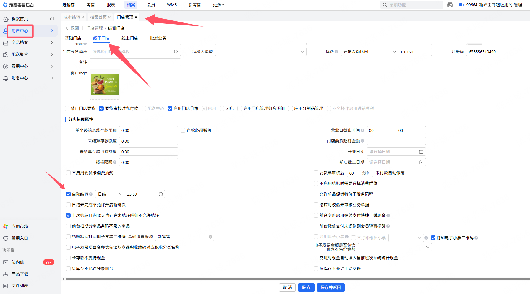 👉【操作路径】:·档案-用户中心-门店管理-门店id进去-线下门店