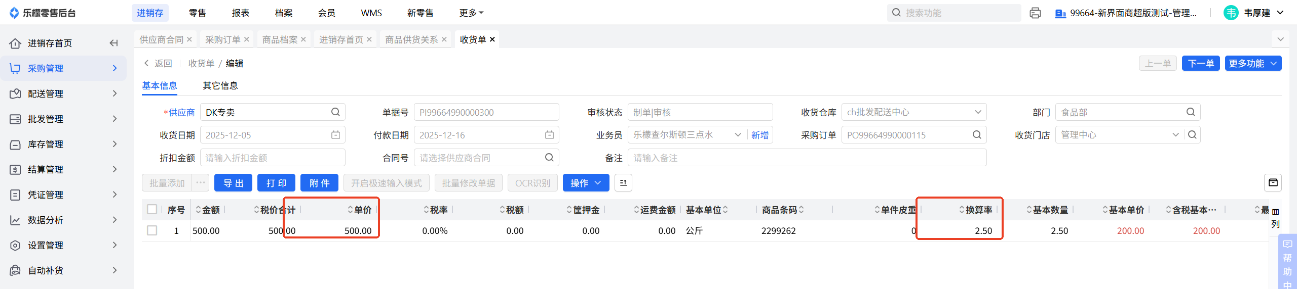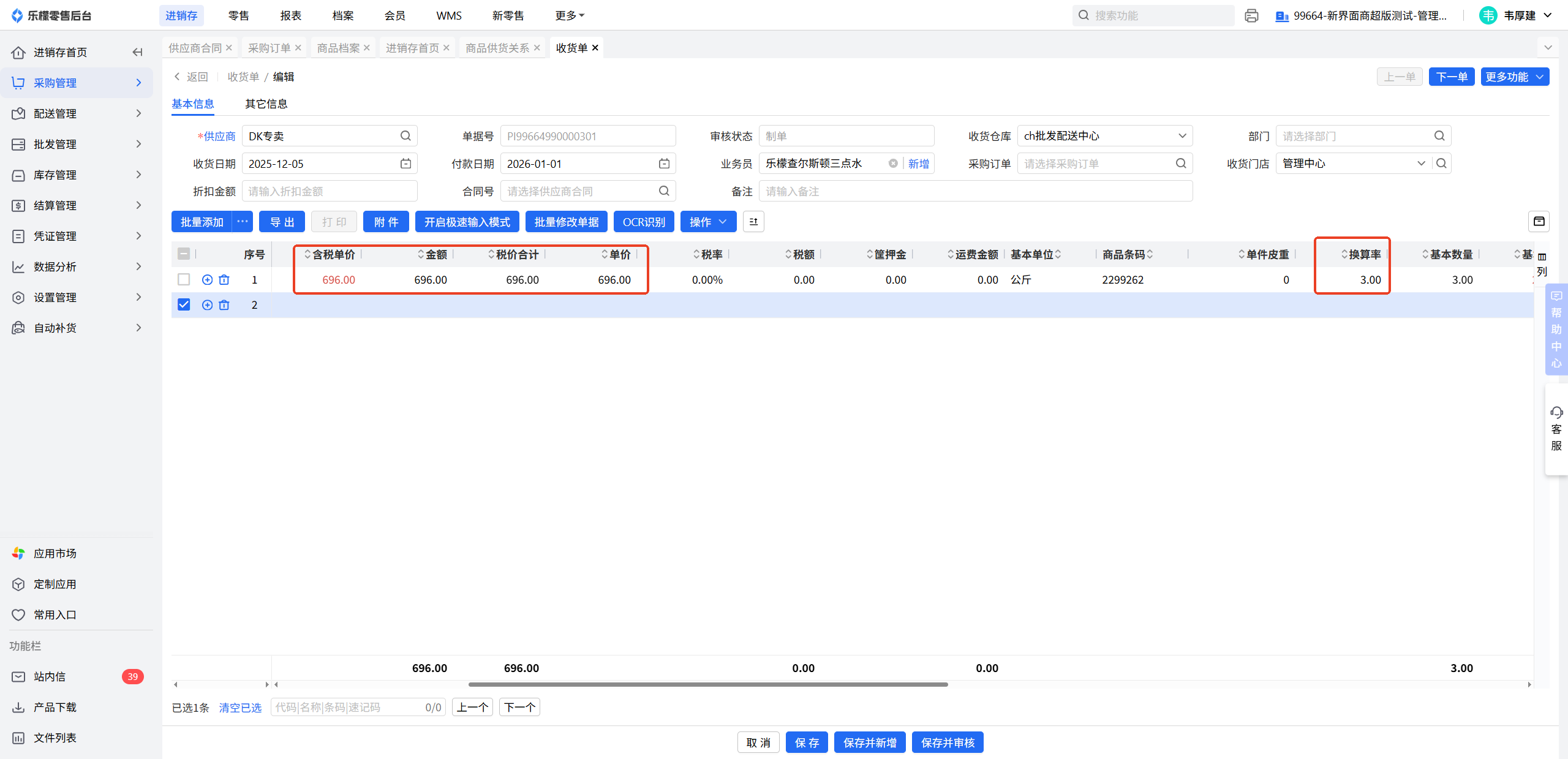 因为此批次单价和换算率有变动,客户想修改单价为580,批次换算率为3