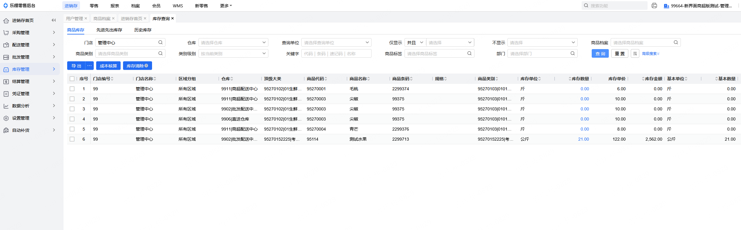 设置后用户在所有界面都只能查看到自己部门的商品,无法查看到其他部门的商品信息