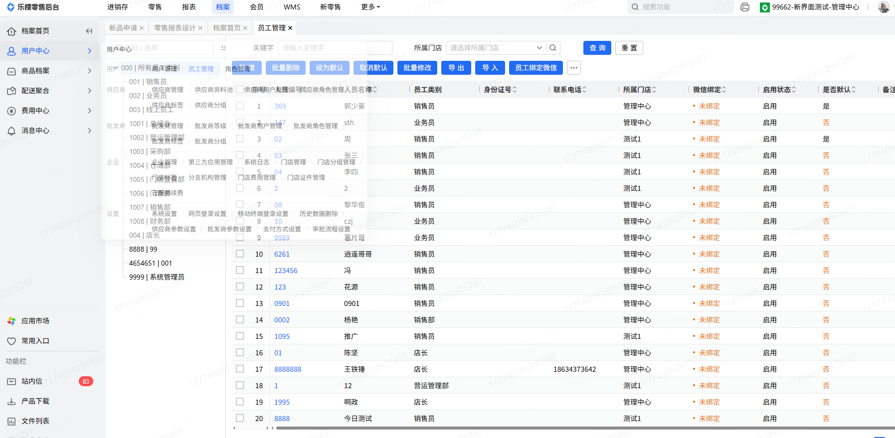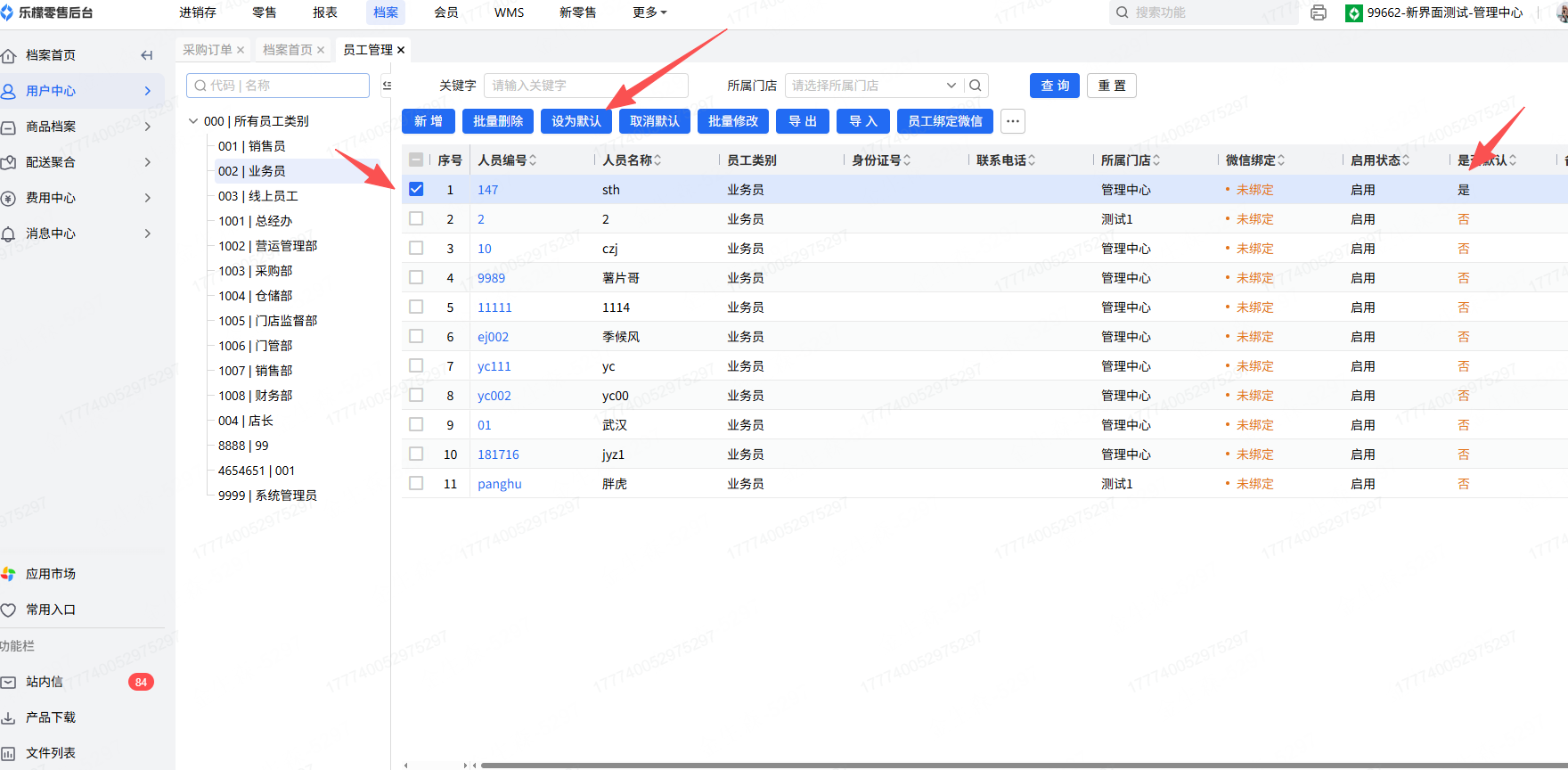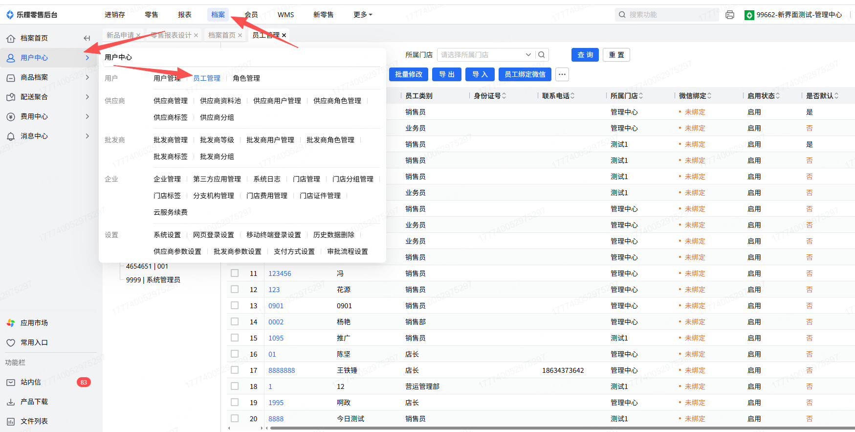 👉【操作路径】:·乐檬web后台-档案-用户管理-员工管理