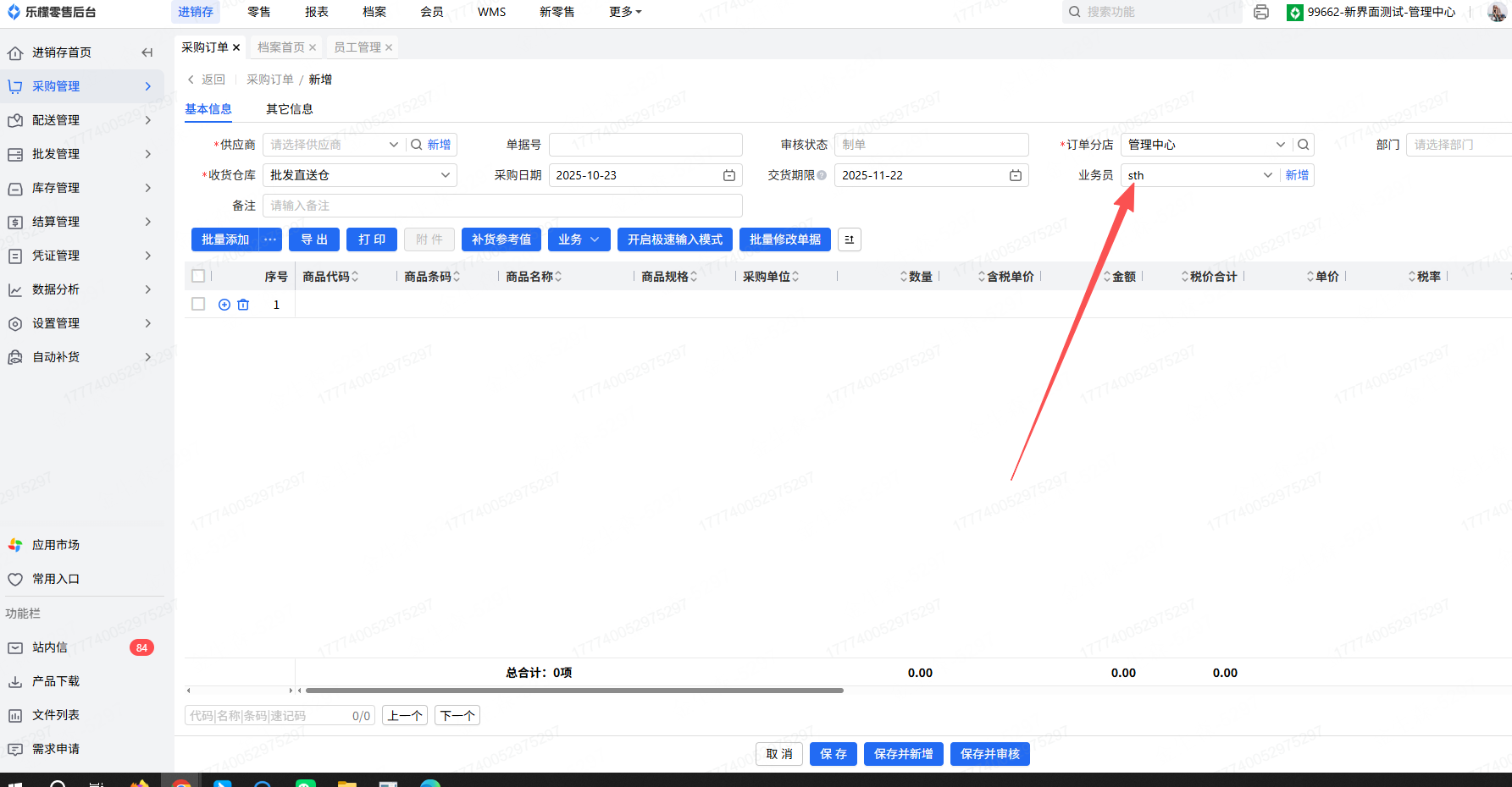 新增业务单据默认业务员说明