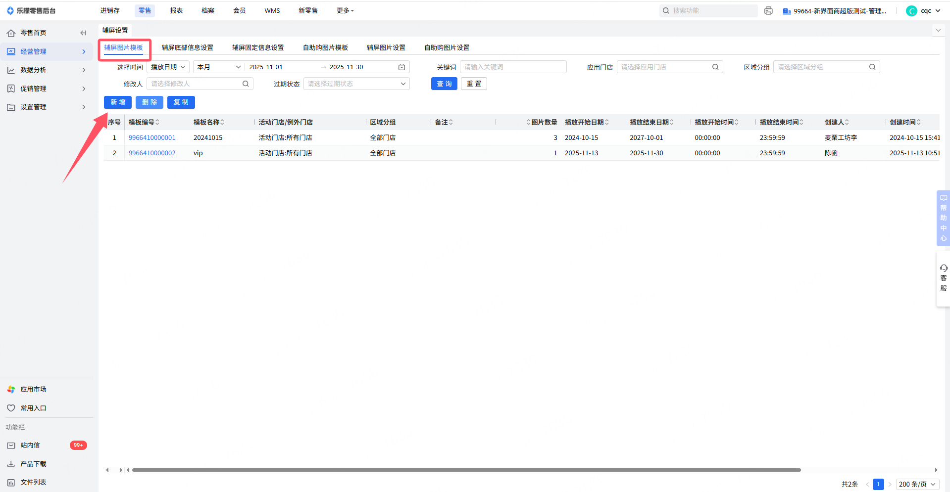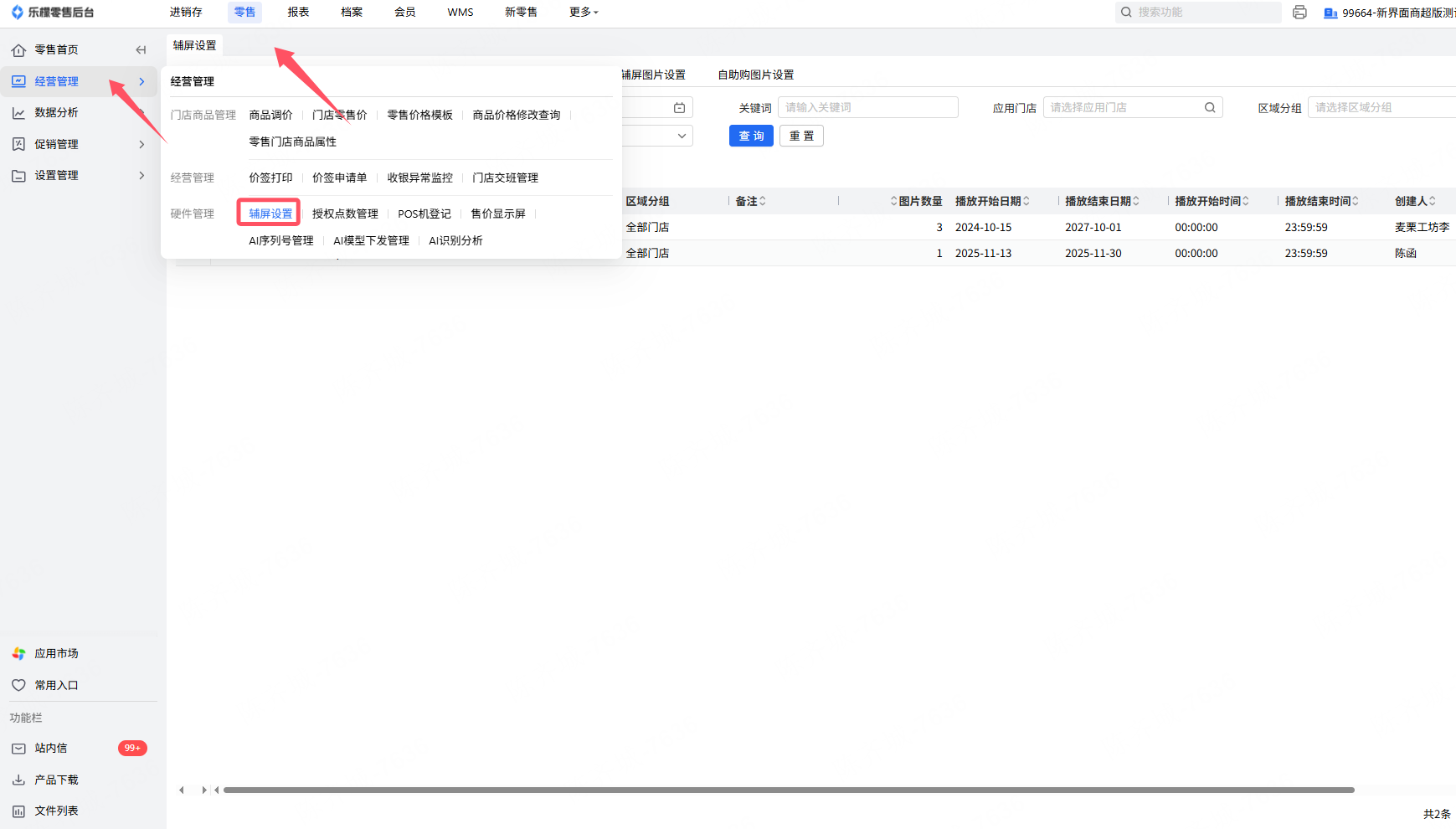 👉【操作路径】:·零售-经营管理-硬件管理-辅屏设置