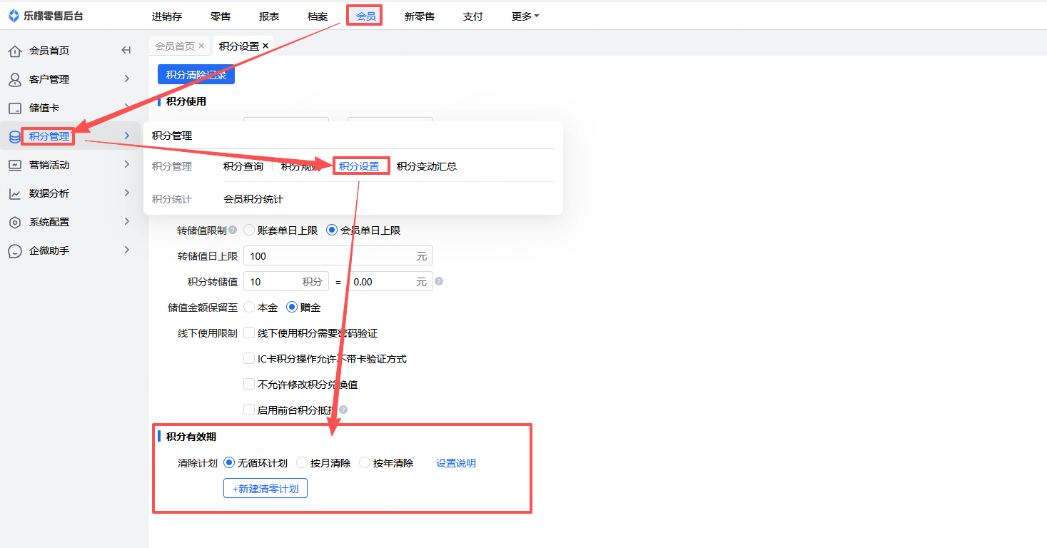 👉【操作路径】:会员-积分管理-积分设置-积分有效期