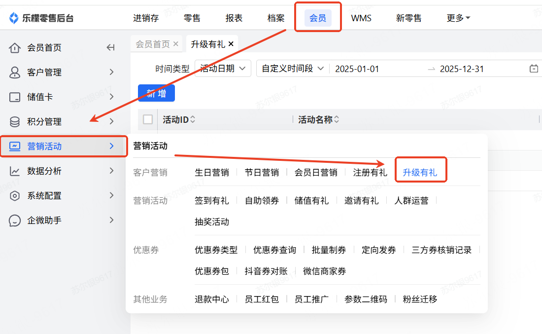 👉【操作路径】:·会员-营销活动-升级有礼