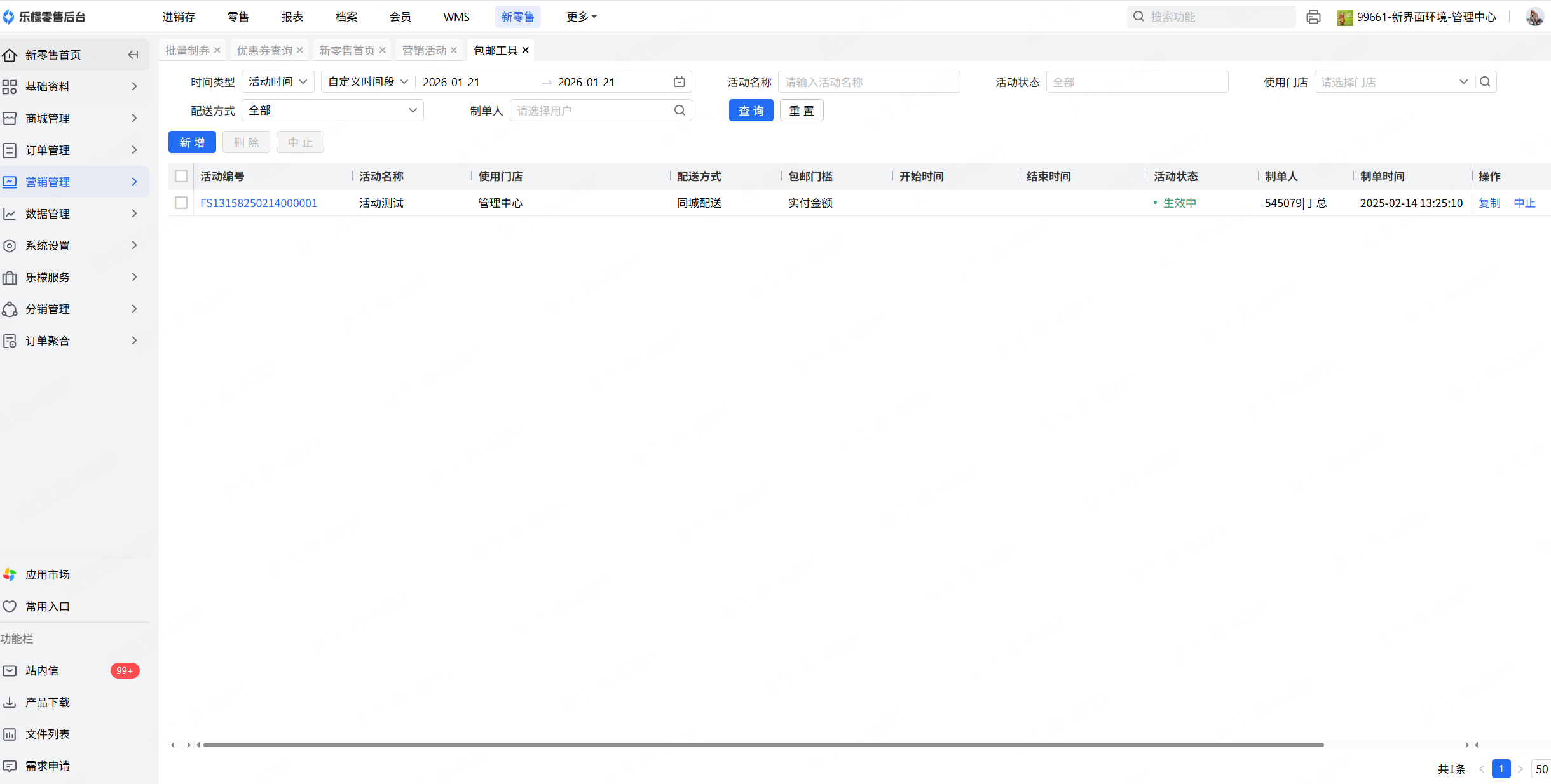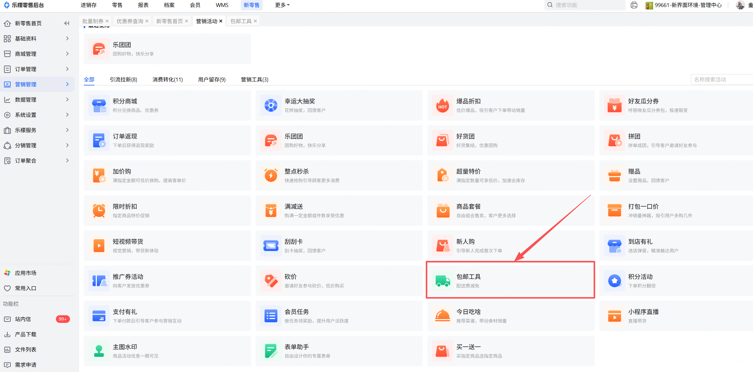 👉【操作路径】:·新零售-营销工具-包邮工具