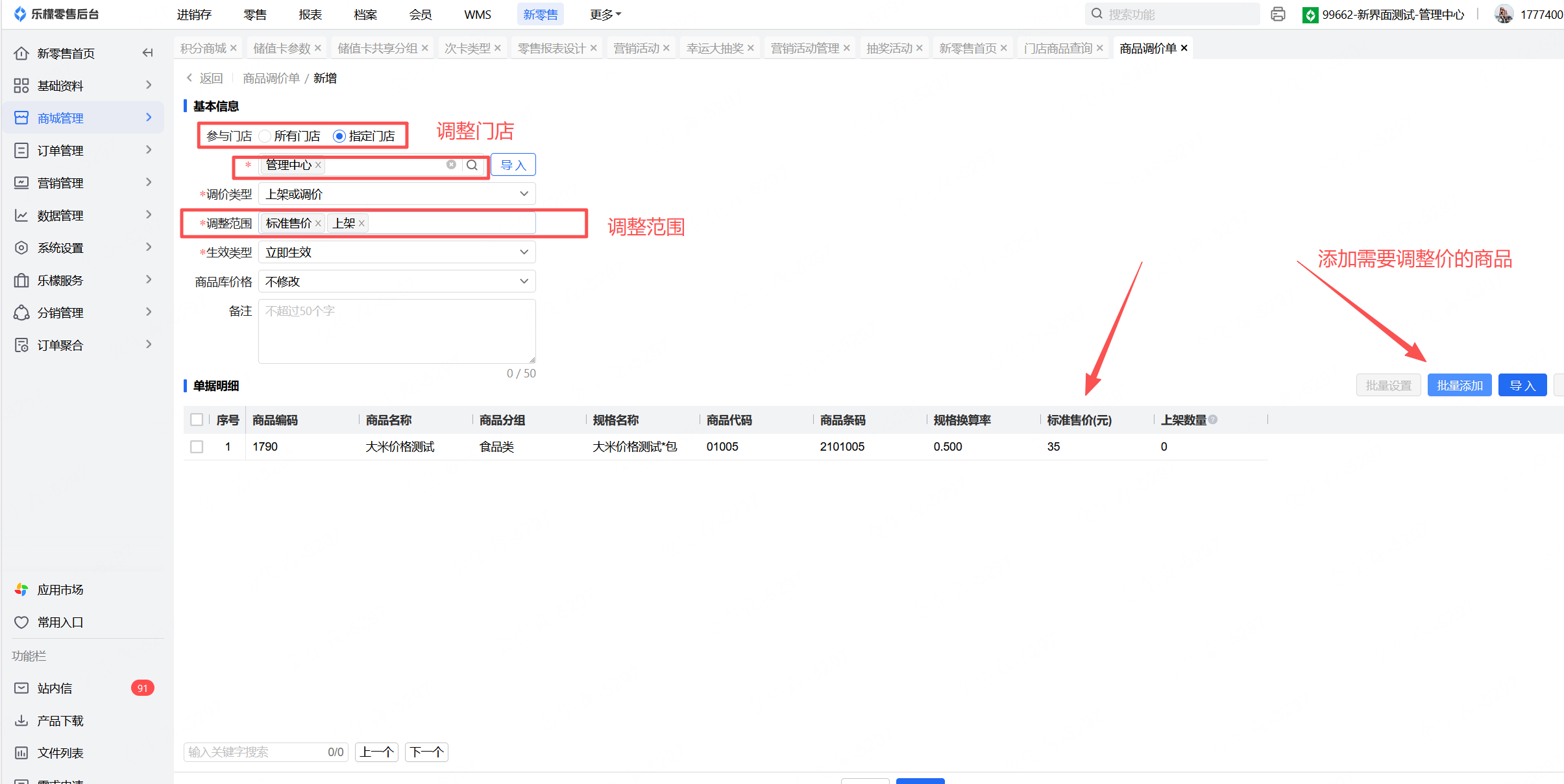 👉【操作路径】:·新零售-商城管理-商品调价单