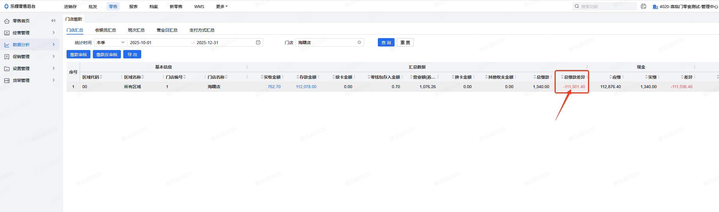 总缴款差异=总缴款-销售金额-存款金额-零钱包存款-其他收支金额。