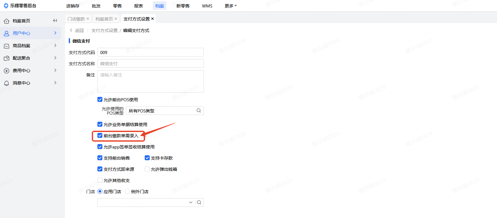 只要支付方式勾选了前台缴款单需录入就会统计,线上支付储值卡等门店不用缴款的客户也勾选上了导致