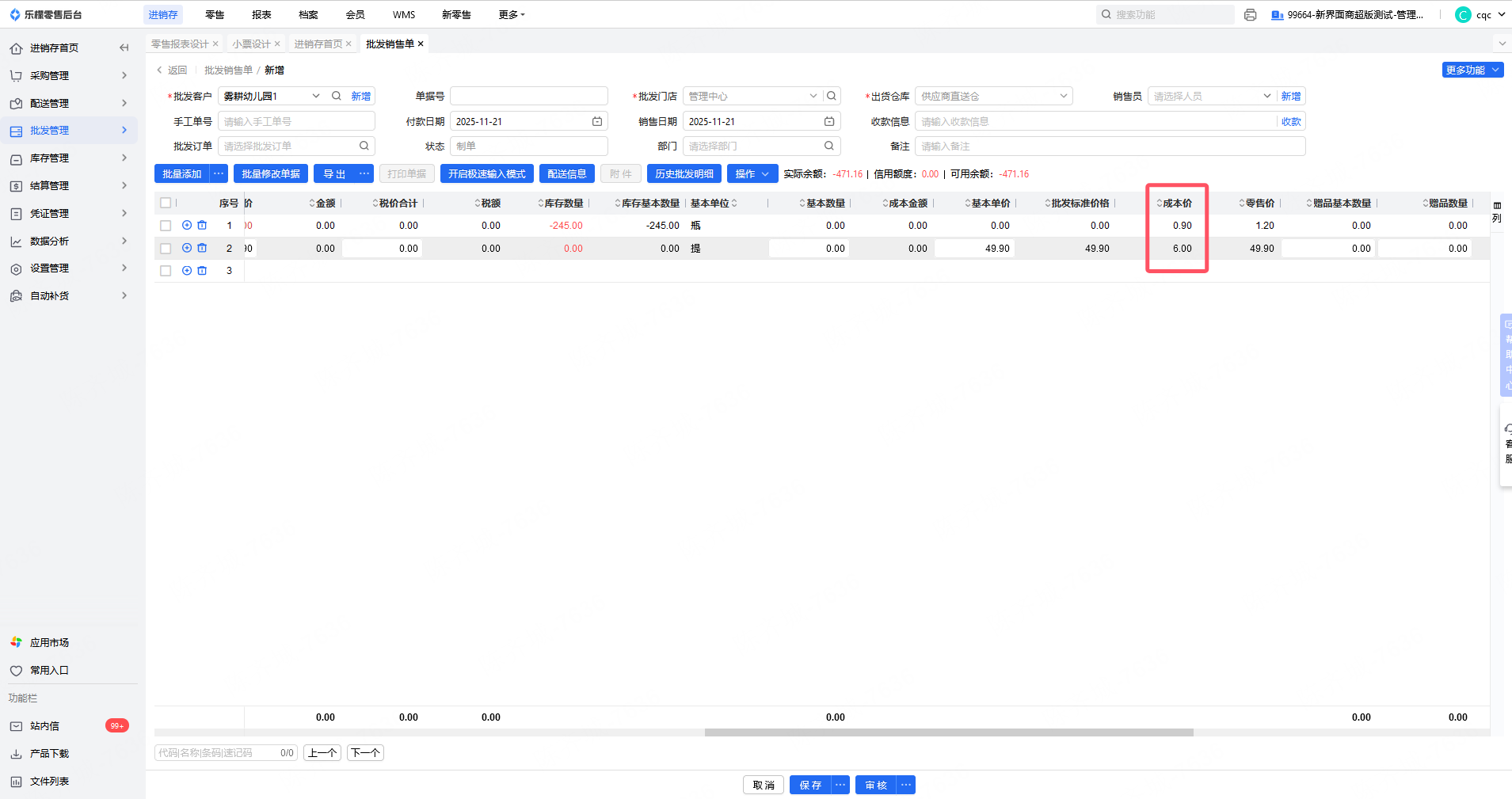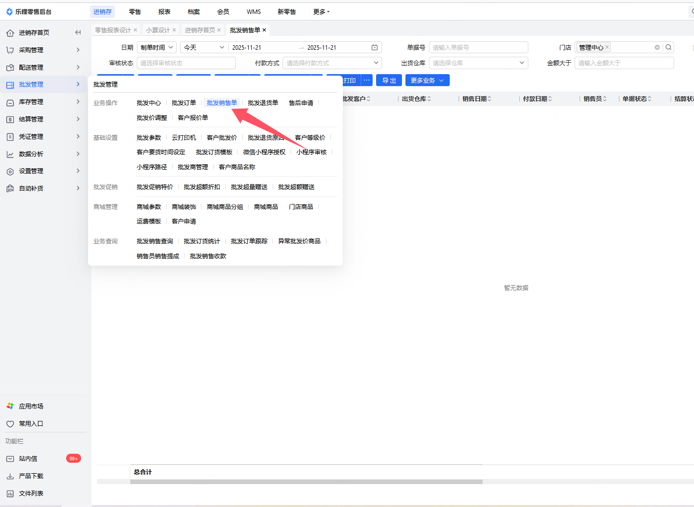 👉【操作路径】:·进销存-批发管理-业务操作-批发销售单