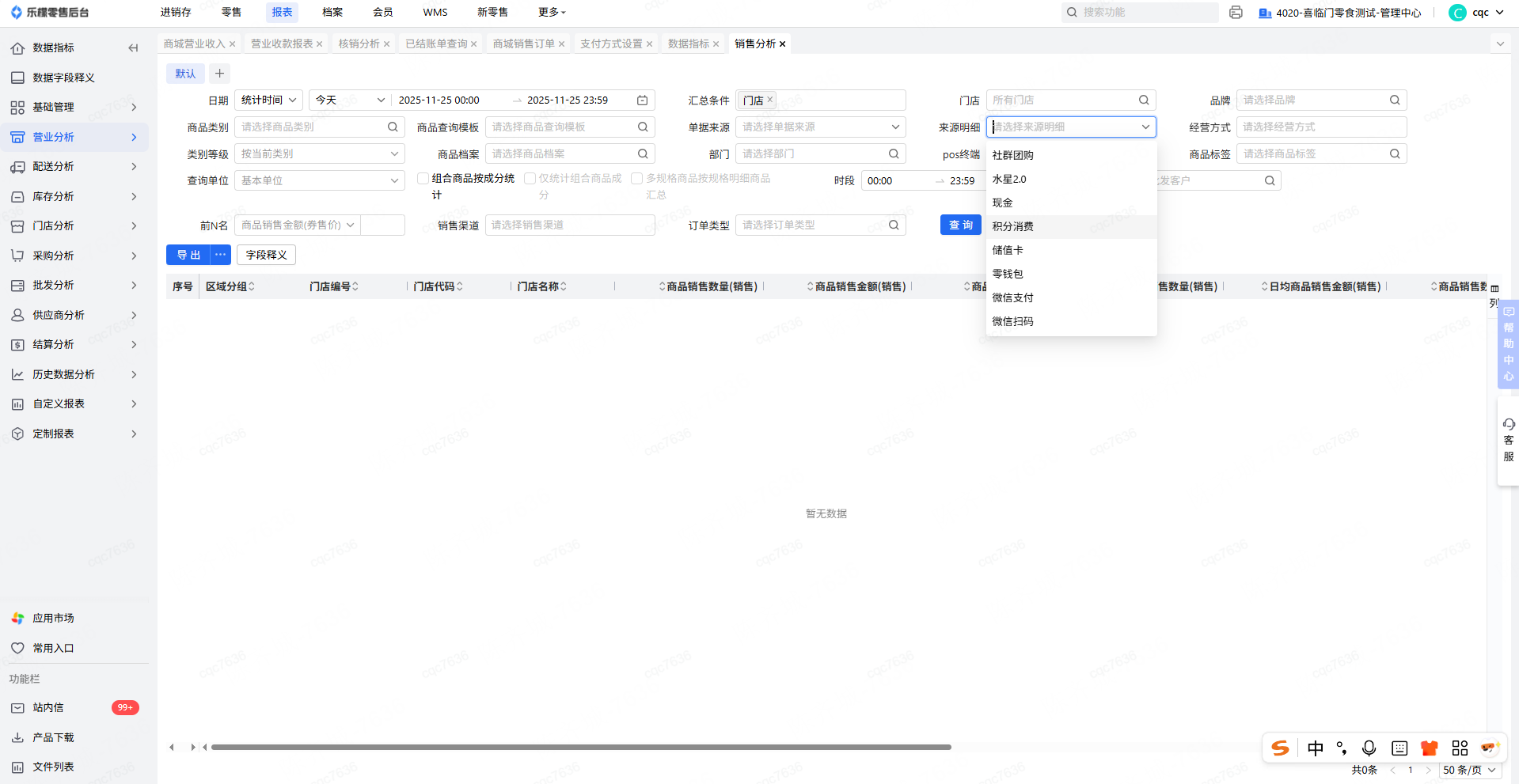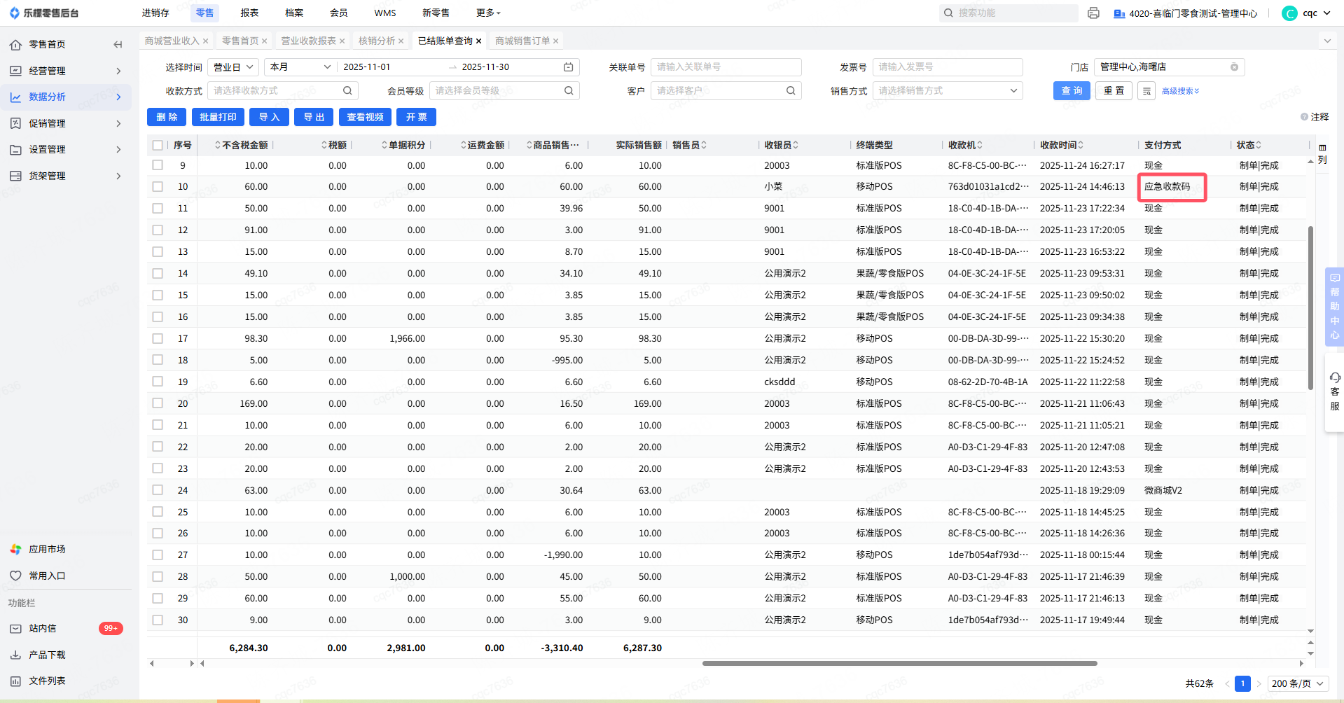 👉【操作路径】:·零售-数据分析-已结账单查询