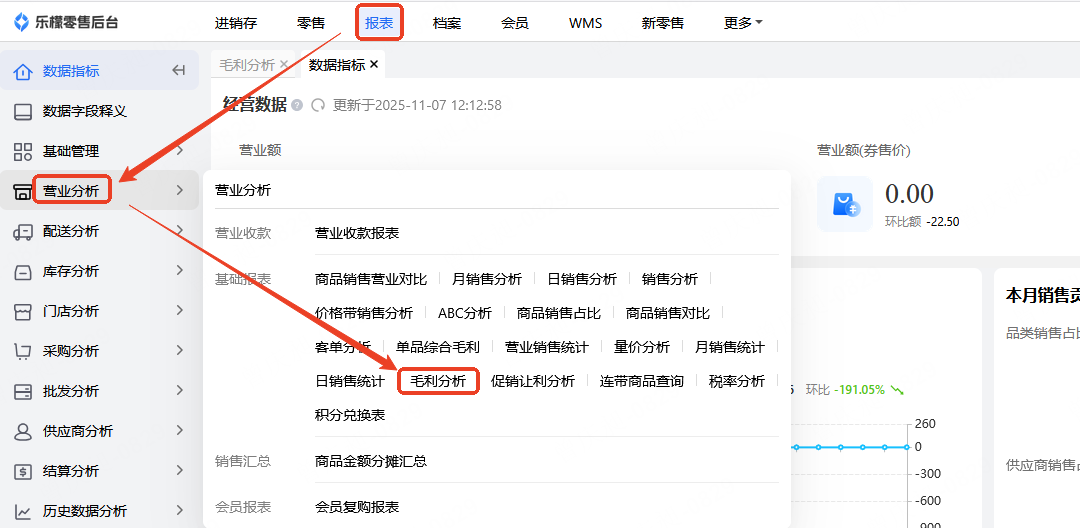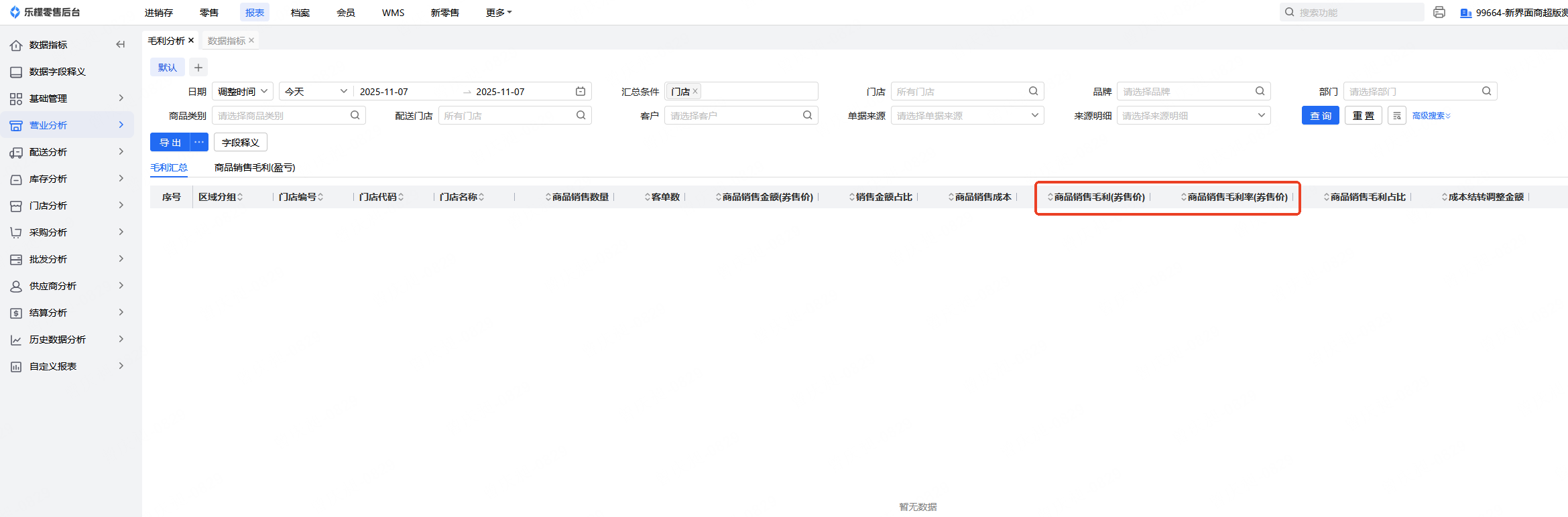 毛利分析看不到商品销售毛利和商品销售毛利率