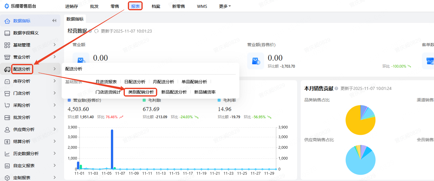 👉【操作路径】:报表 - 配送分析 - 类别配销分析