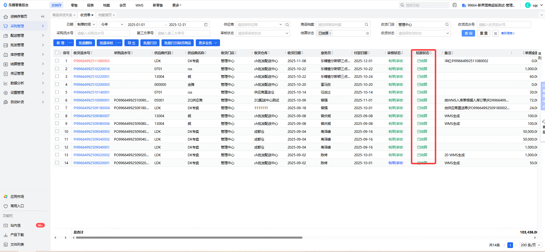 👉【操作路径】:·进销存-采购管理-业务操作-收货单