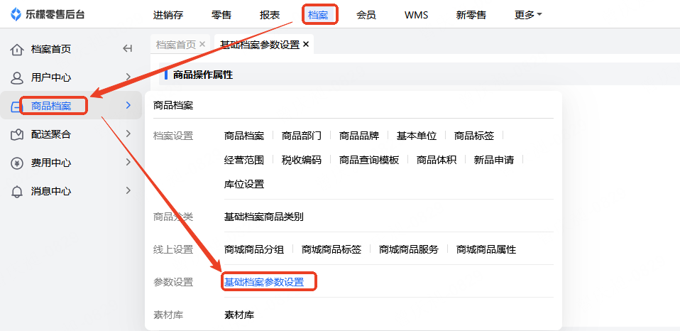 👉【操作路径】:1.档案-商品档案-基础档案参数设置