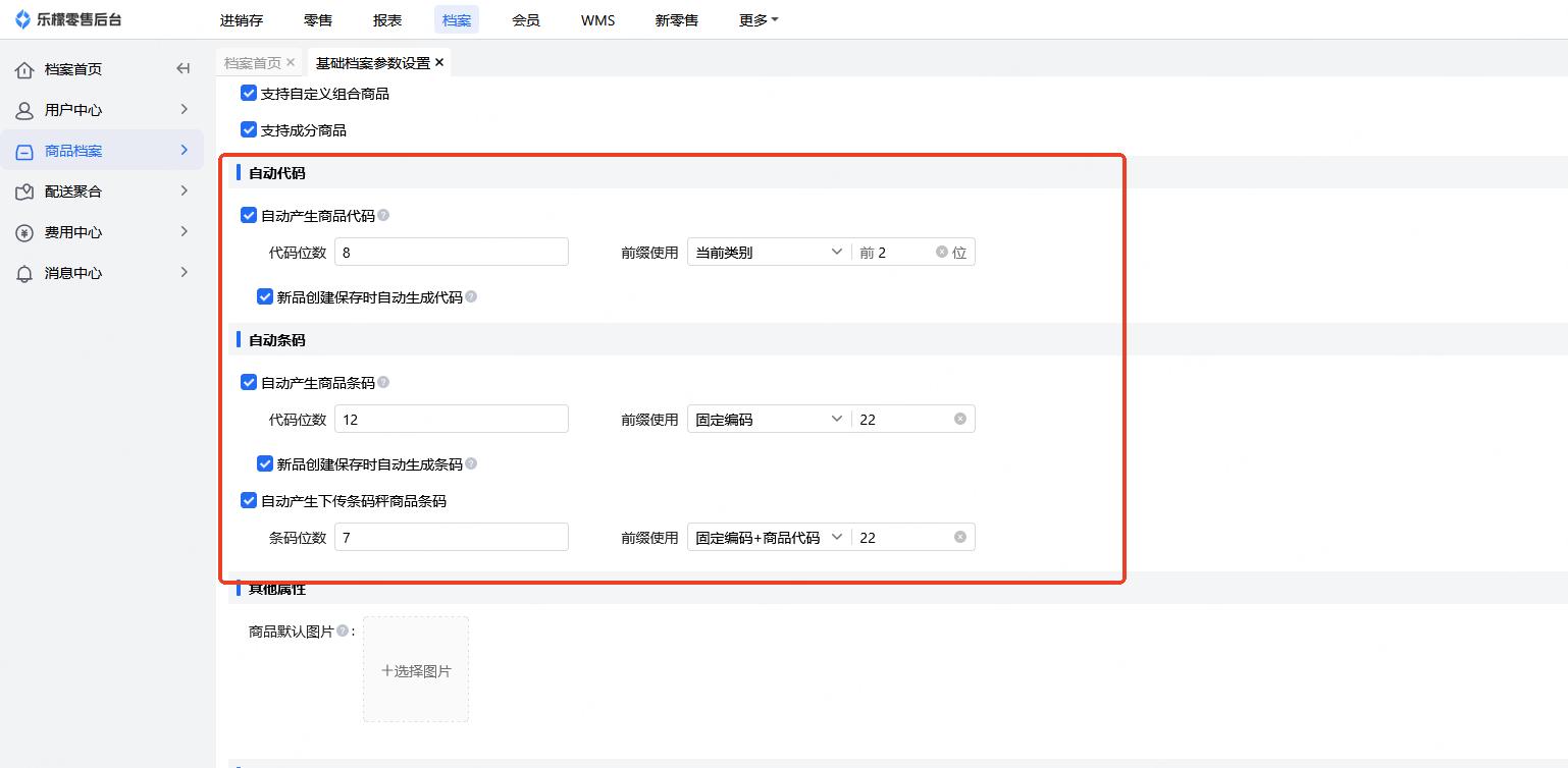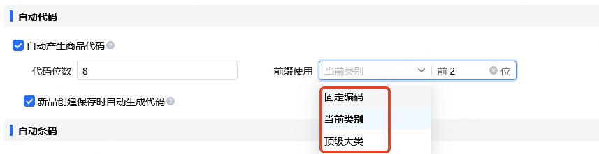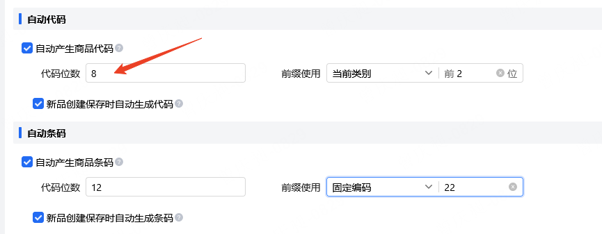 新增商品档案时,需要系统自动生成商品代码、商品条码