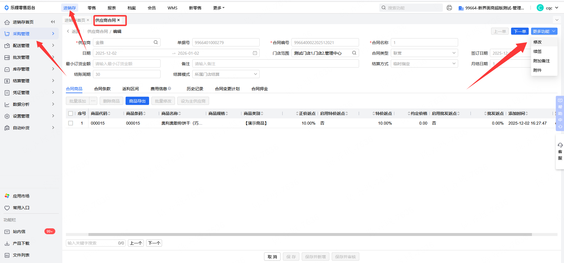 👉【操作路径】:·进销存-采购管理-业务操作-供应商合同
