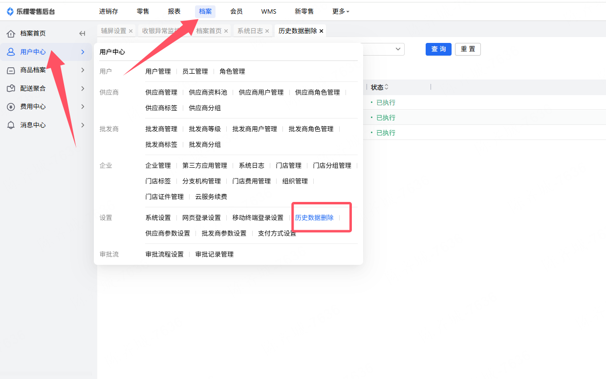 👉【操作路径】:·档案- 用户管理 -设置- 历史数据删除