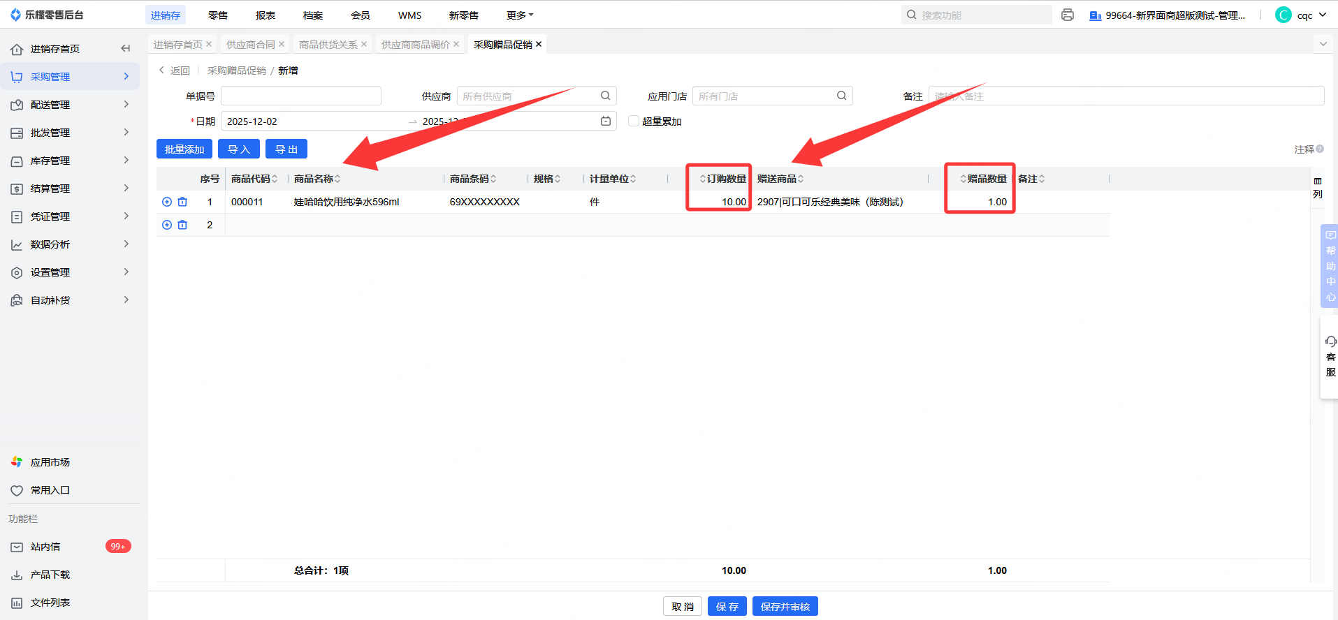 👉【操作路径】:·进销存-采购管理-采购促销-采购赠品促销