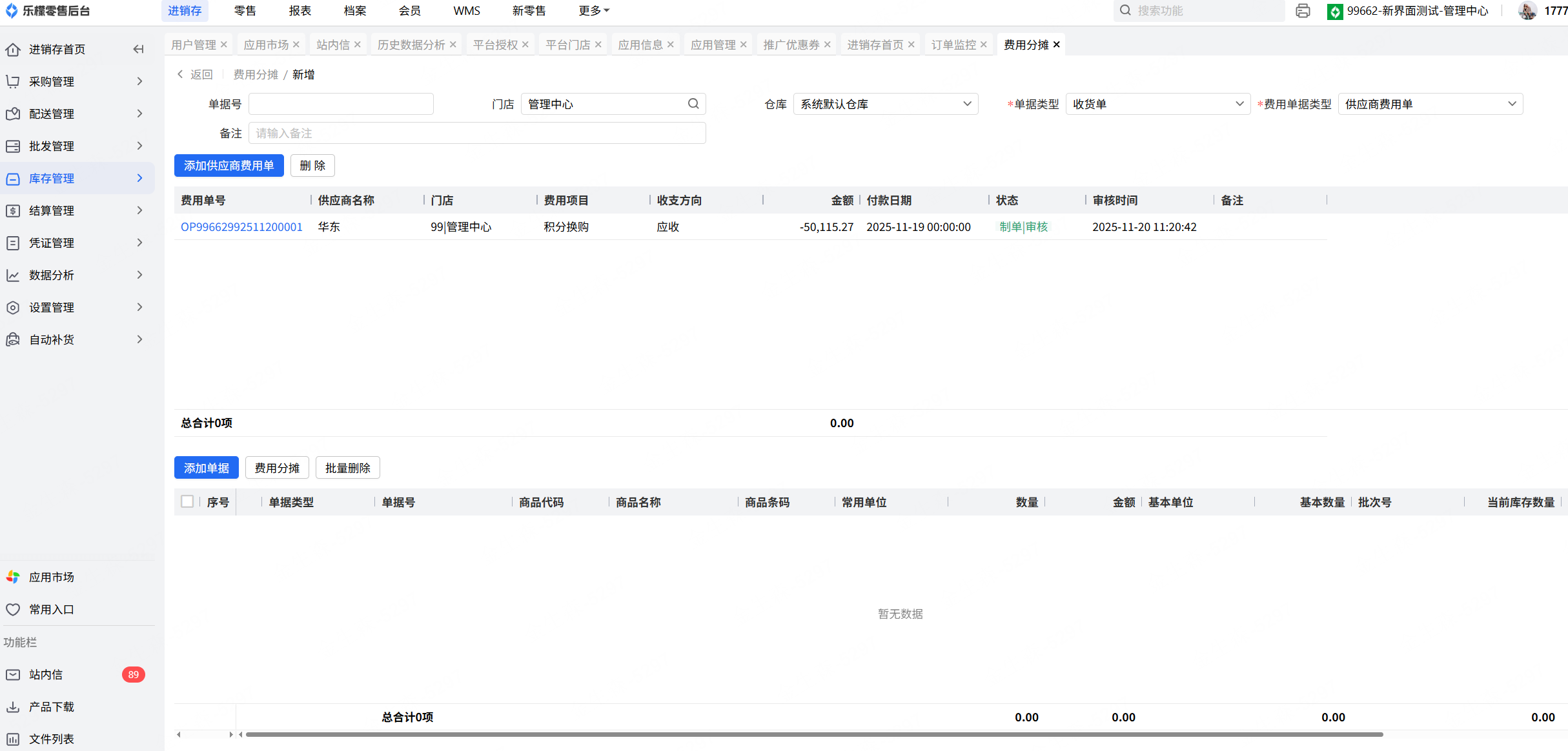 👉【操作路径】:·进销存-库存管理-费用分摊