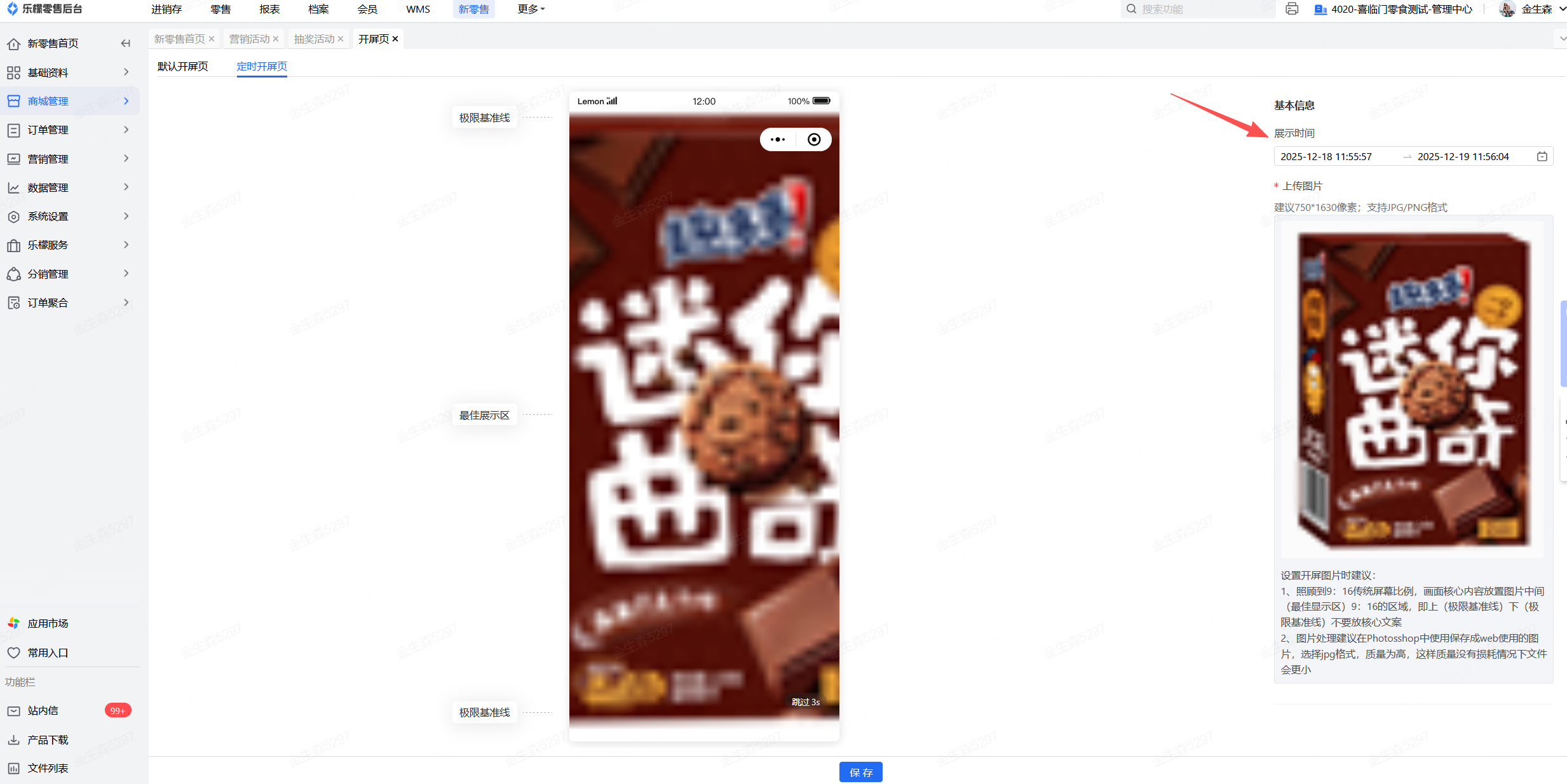 👉【操作路径】:·新零售-商城管理-开屏页