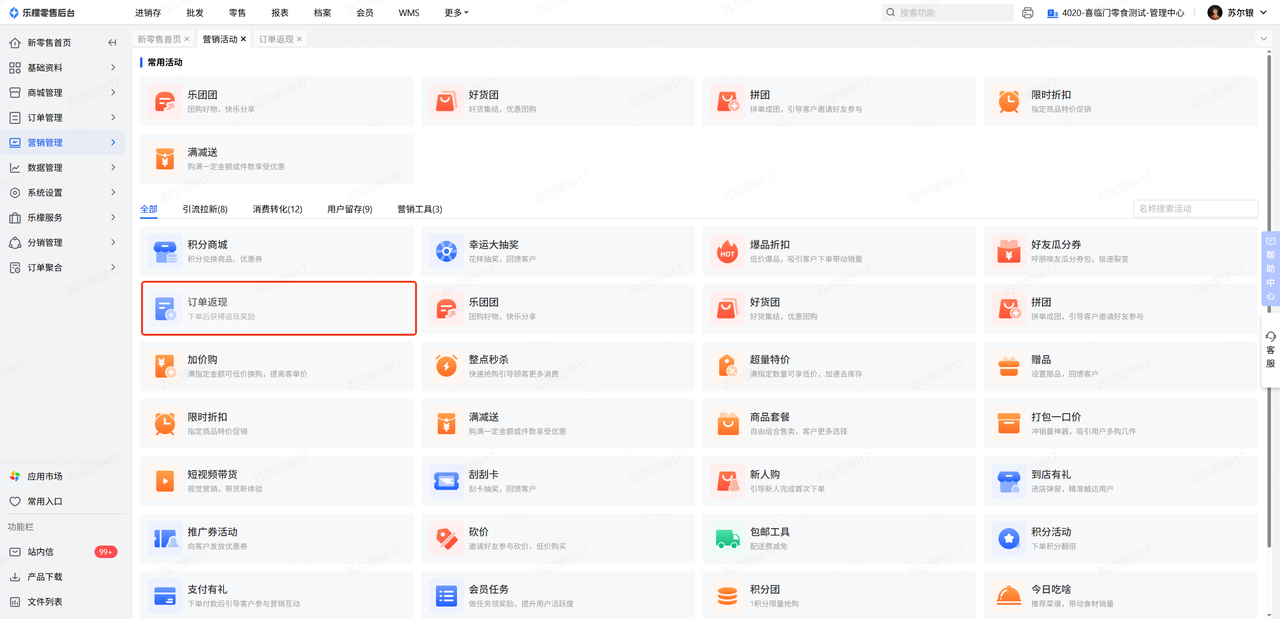 👉【操作路径】:·新零售-营销管理-营销活动-订单返现