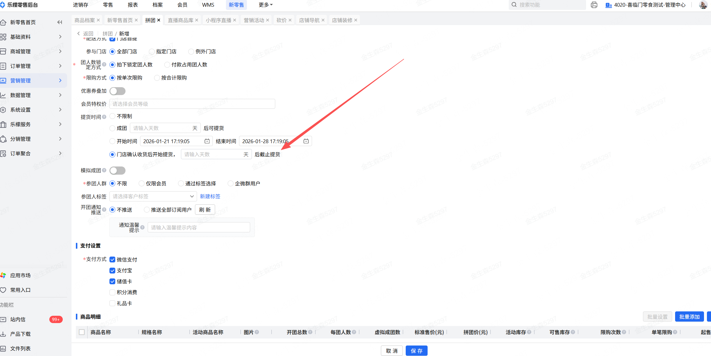 👉【操作路径】:·乐檬零售APP-拼团活动-到货管理